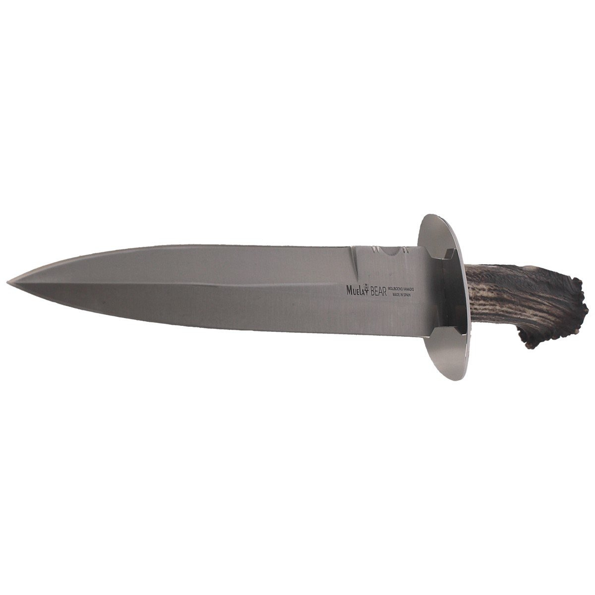- BEAR-24S unikalny nóż ze stałą klingą typu REMATE firmy Muela. Wysoka jakość materiałów, staranne wykończenie detali - idealny dla kolekcjonerów, miłośników polowań. Rękojeść poroże jelenia z koroną zakończoną medalionem z motywem myśliwskim. Etui skóra..