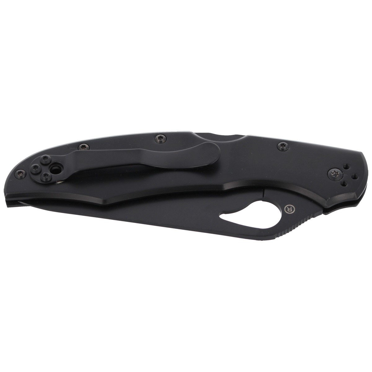 Głownia - typu Drop Point zapewnia doskonałą geometrię krawędzi tnącej o niskim współczynniku tarcia (Low-Friction). Ostrze pokryto wytrzymałą matową powłoką proszkową black oxide coating, wyprowadzono szlifem pełnym płaskim (Full Flat Grind). Karbowany grzbiet głowni, rampa ustawia kciuk oraz daje solidne podparcie, a łukowate podcięcie pod palec wskazujący między rękojeścią a krawędzią tnącą (finger choil jimping) ułatwia operowanie folderem. Wycięcie w kształcie komety Comet-shaped (patent Spyderco) do szybkiego otwarcie klingi. Blokada głowni Back-Lock z zabezpieczeniem przed przypadkowym zwolnieniem blokady, wycięcie w blokadzie projektu Davida Boye'a.