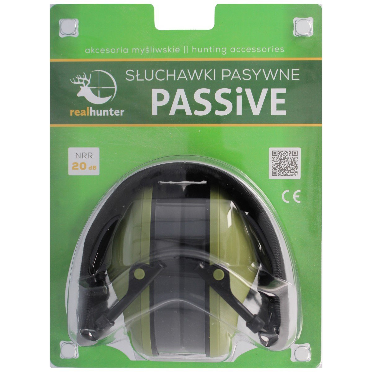 • RealHunter Passive Olive pasywne strzeleckie ochronniki słuchu z regulowanym pałąkiem. Wygodne, lekkie z ukośnie ściętymi czaszami dla wygodnego składu z broni. Idealne do ochrony słuchu dla myśliwych, strzelców poszukujących ochronnika w doskonałej cenie