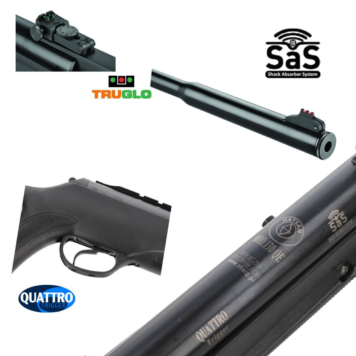 Wiatrówkę wyposażono w szereg rozwiązań poprawiających komfort oraz bezpieczeństwo użytkowania. Zastosowanie prostych i trwałych rozwiązań w karabinach Hatsan decyduje o tym, że są to produkty wysoce bezawaryjne, pozwalające się cieszyć długim użytkowaniem. To właśnie trwałość jest tym, z czego słyną wiatrówki marki Hatsan.