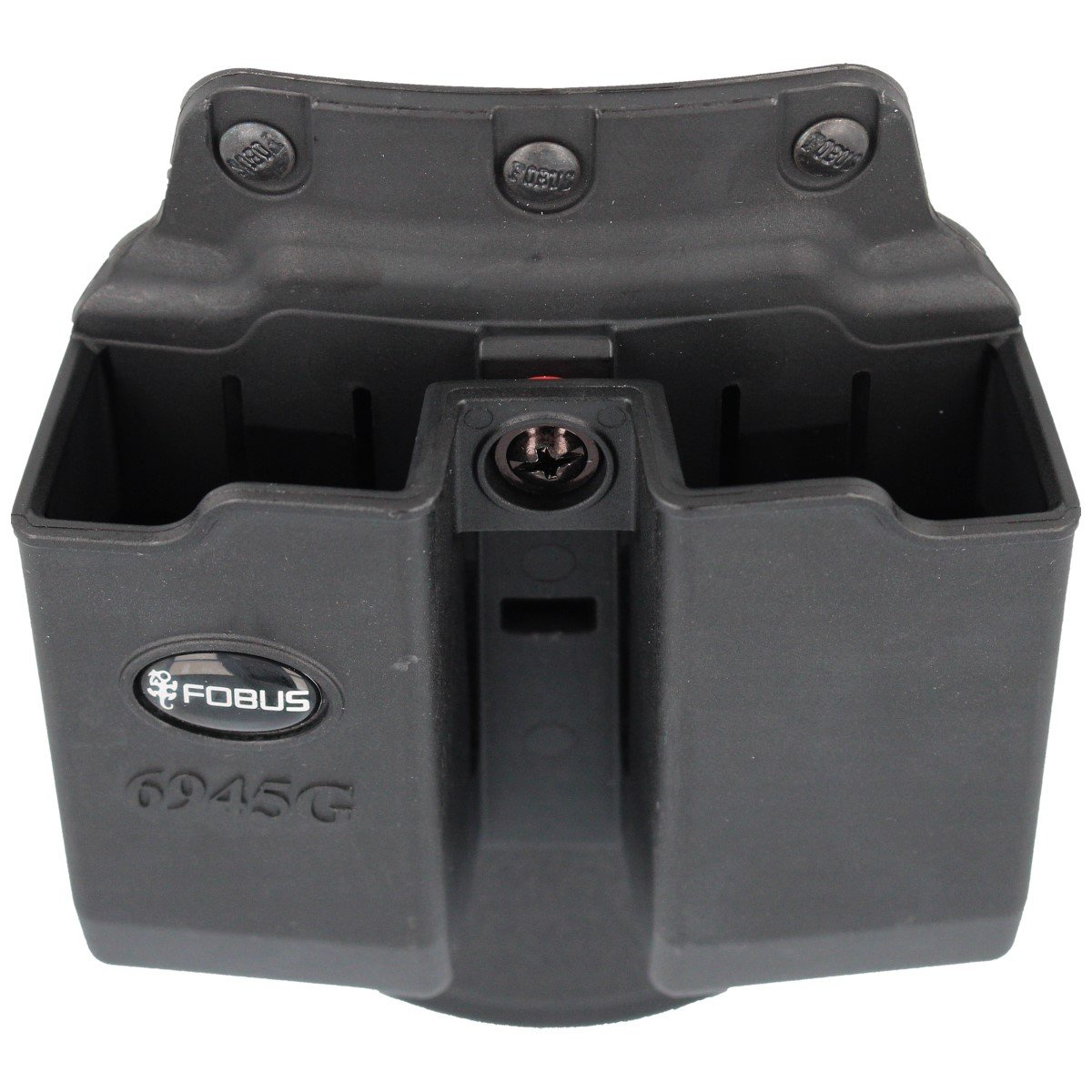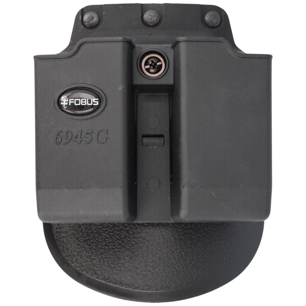 - 6945G (Paddle), ładownica typu otwartego firmy Fobus na dwa dwurzędowe magazynki pistoletowe w kalibrze .45 do pistoletu Glock. Mocowanie P (Paddle) płetwa na pas o szerokości do 45mm. Zaprojektowana aby jak najbliżej przylegać do sylwetki / umundurowania