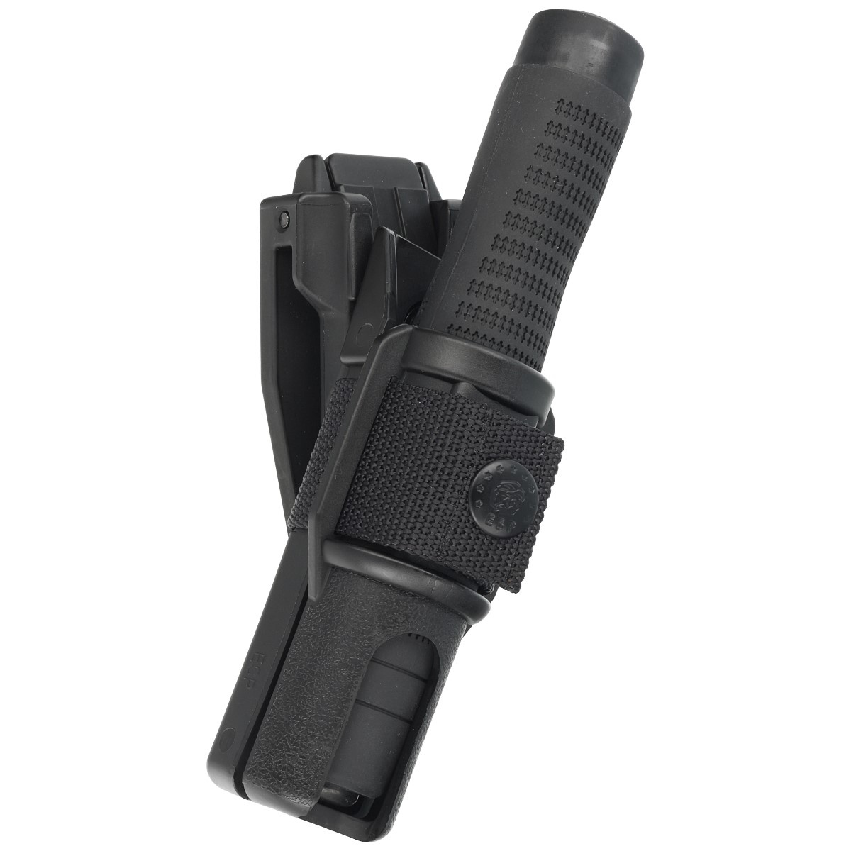 Kabura - opatentowana konstrukcja umożliwia obrót uchwytu o pełne 360° oraz blokowanie w jednej z 16 pozycji. Pałka może być przenoszona złożona lub rozłożona w pozycji pionowej, poziomej jak i innej dowolnej. Etui wykonano z ciężkiego (heavy-duty), utwardzanego polipropylenu w kolorze czarnym.