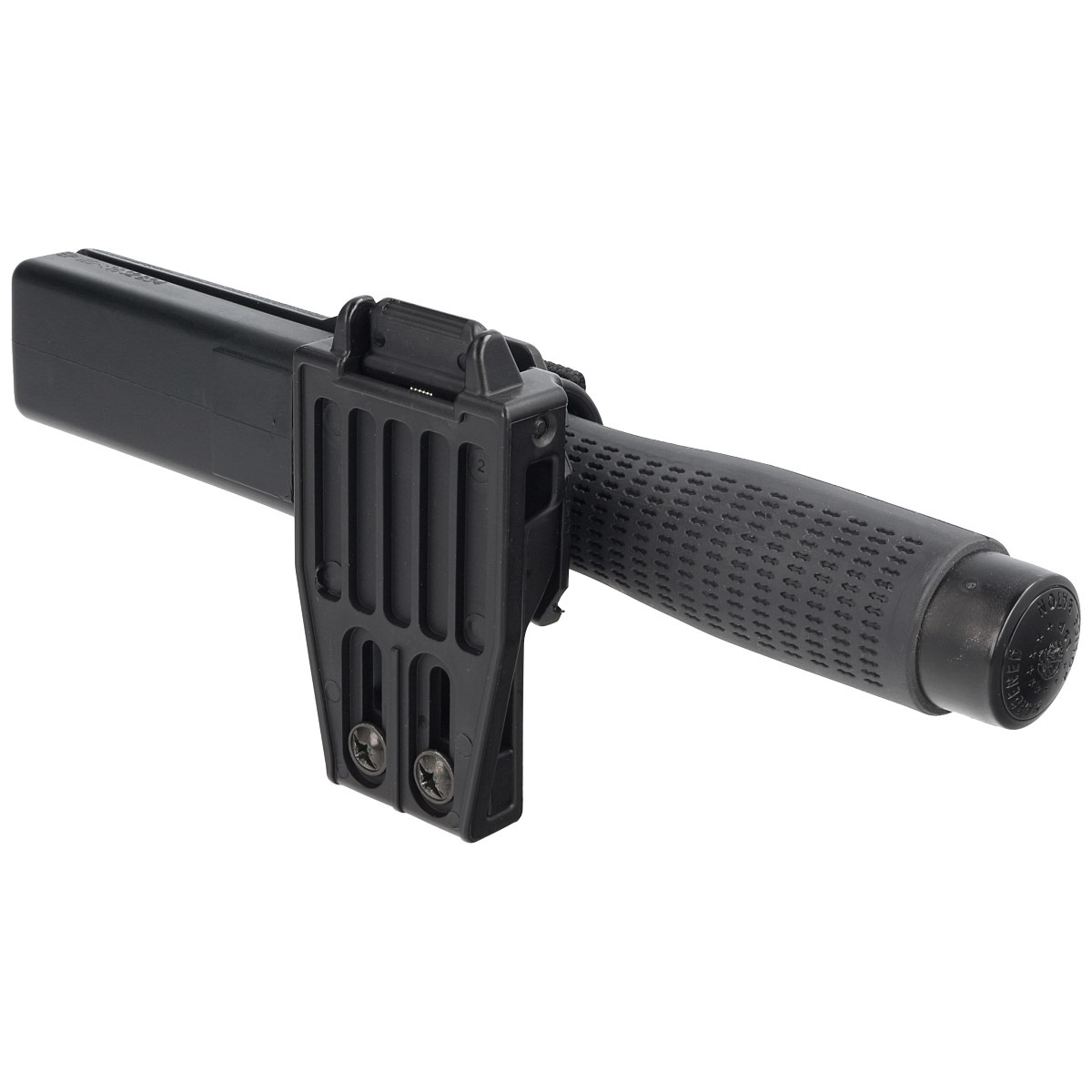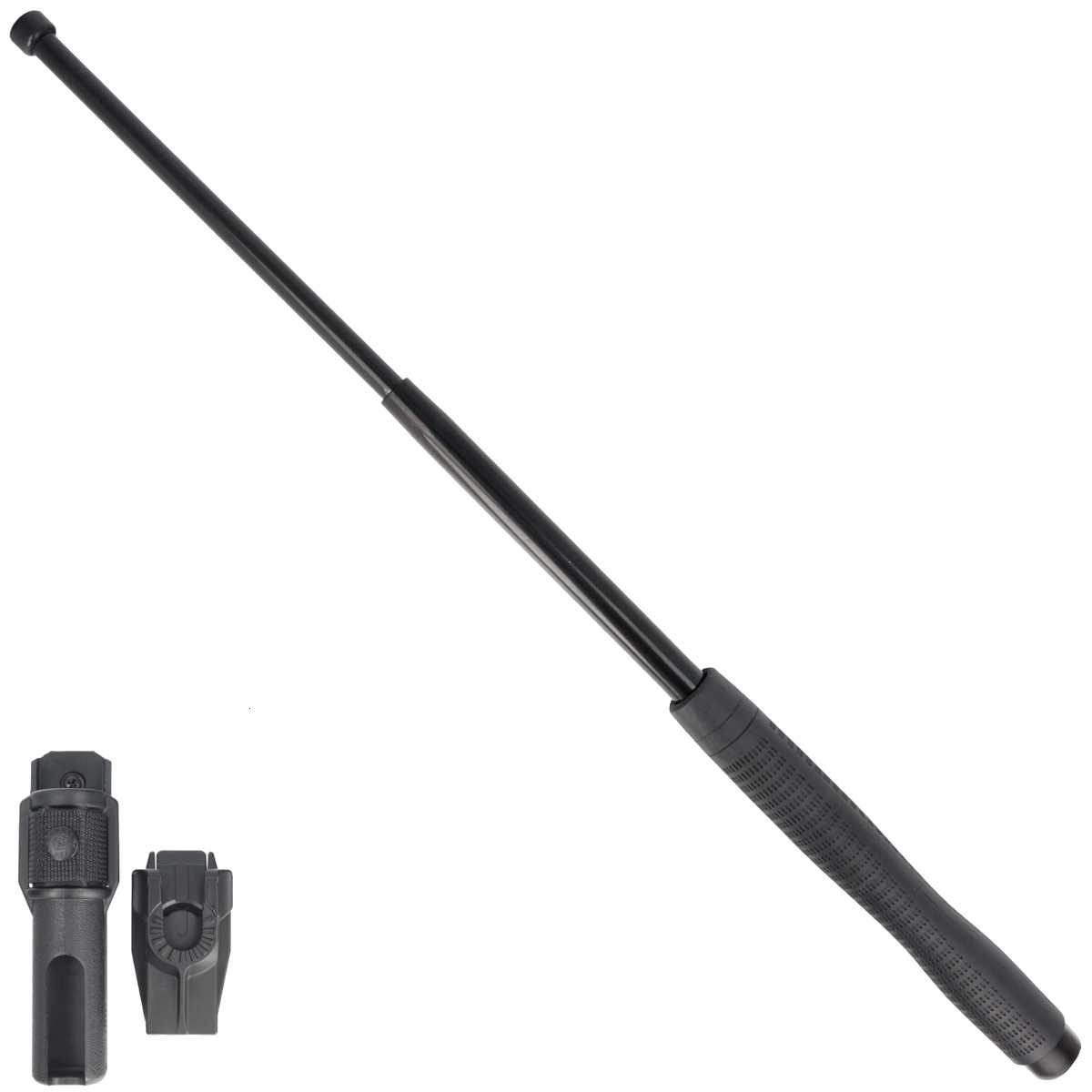Hartowana pałka teleskopowa o długości 23 cali typu Friction Loc firmy ESP z rękojeścią typu Ergonomic. Profesjonalny wypinany obrotowy uchwyt (360° Roto) BH-55 wyposażony w mocowanie UBC-5 (Quick Change System). Dla tych którzy cenią większy zasięg oraz skuteczność uderzeń przy wymiarach batona zbliżonych do 21 calowej policyjnej pałki teleskopowej. Wykonany ze stali hartowanej.