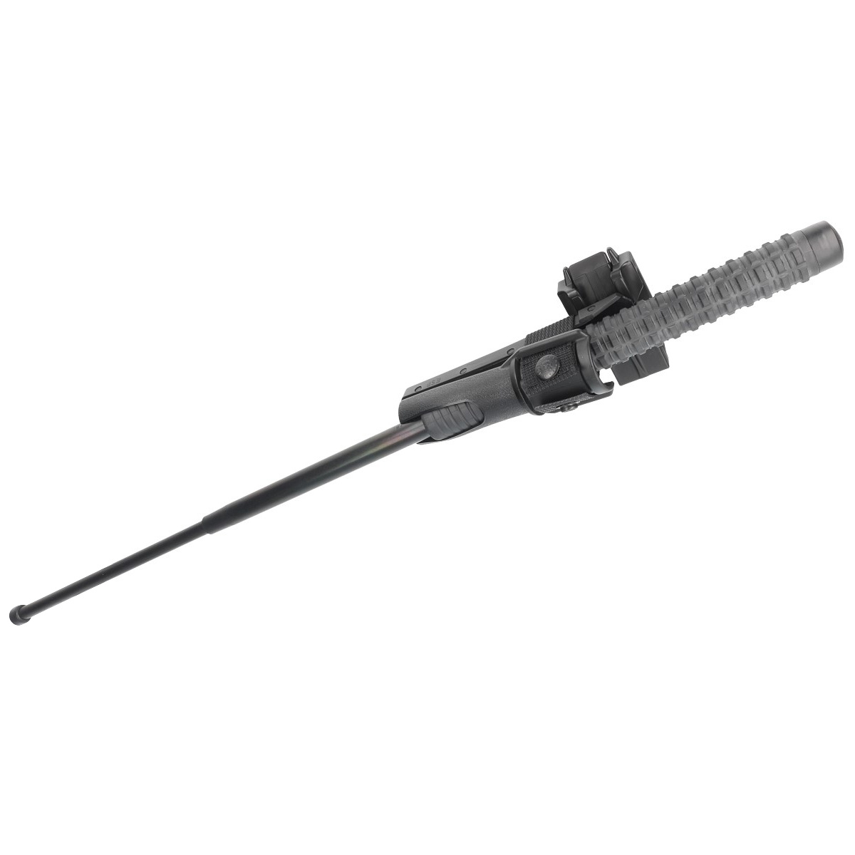Hartowana pałka teleskopowa o długości 26 cali typu Friction Loc firmy ESP. Profesjonalny wypinany obrotowy uchwyt (360° Roto) BH-55 wyposażony w mocowanie UBC-5 (Quick Change System). Najdłuższy z modeli o największym zasięgu oraz największej skuteczności uderzeń.