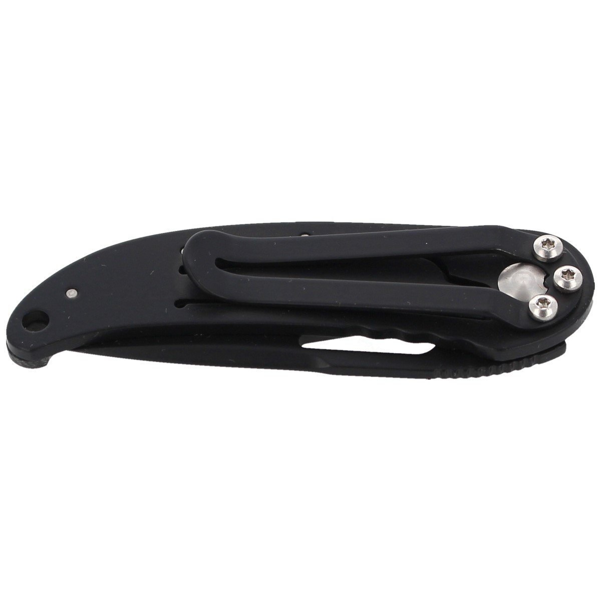Rękojeść - okładziny z czarnego G10 przykręcona do stalowej konstrukcji noża. Klips typu deep carry, jednopozycyjny, umożliwia przenoszenie noża w pozycji tip-down.