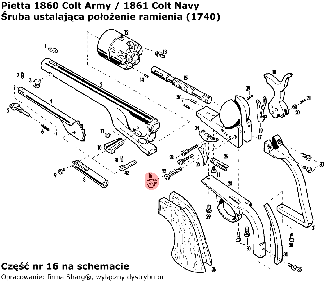 - Śruba ustalająca położenie ramienia Rewolwer Pietta Army (1740)