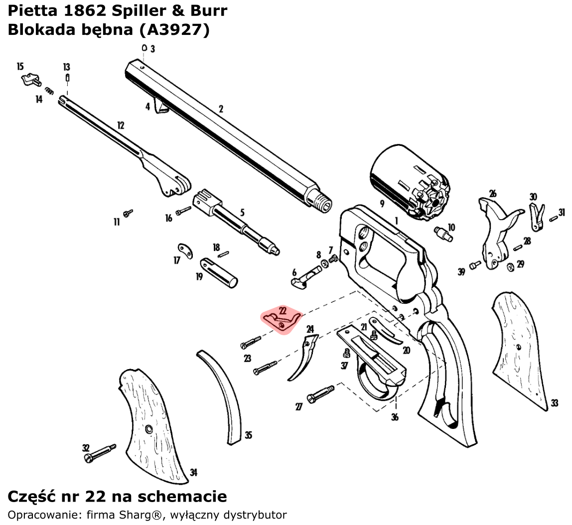 - A3927 (serwis) blokada bębna firmy Pietta. Zaprojektowana do rewolweru czarnoprochowego 1862 Spiller & Burr .36 cal...