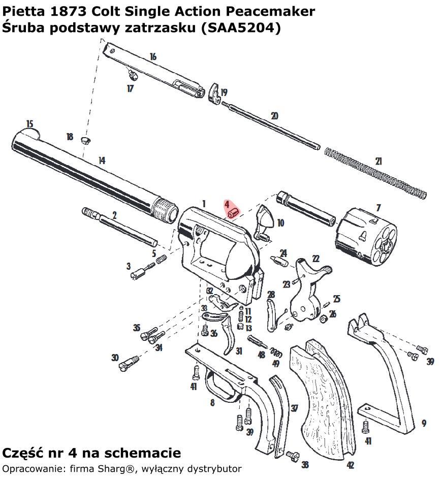- SAA5204 (serwis) śruba podstawy zatrzasku firmy Pietta. Zaprojektowana do rewolwerów czarnoprochowych 1873 Single Action Steel oraz 1873 Single Action Stainless, najsłynniejszych rewolwerów Samuela Colta znanych również jako Peacemaker / Cattleman...