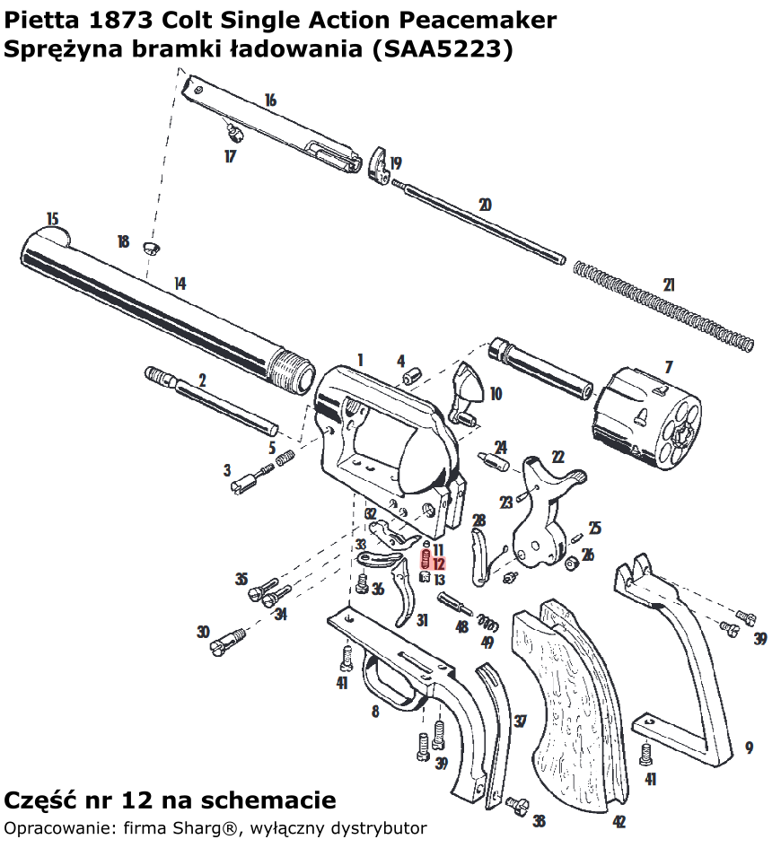 - SAA5223 (serwis) sprężyna bramki ładowania firmy Pietta do rewolwerów czarnoprochowych 1873 Single Action Steel oraz 1873 Single Action Stainless, najsłynniejszych rewolwerów Samuela Colta znanych również jako Peacemaker / Cattleman...