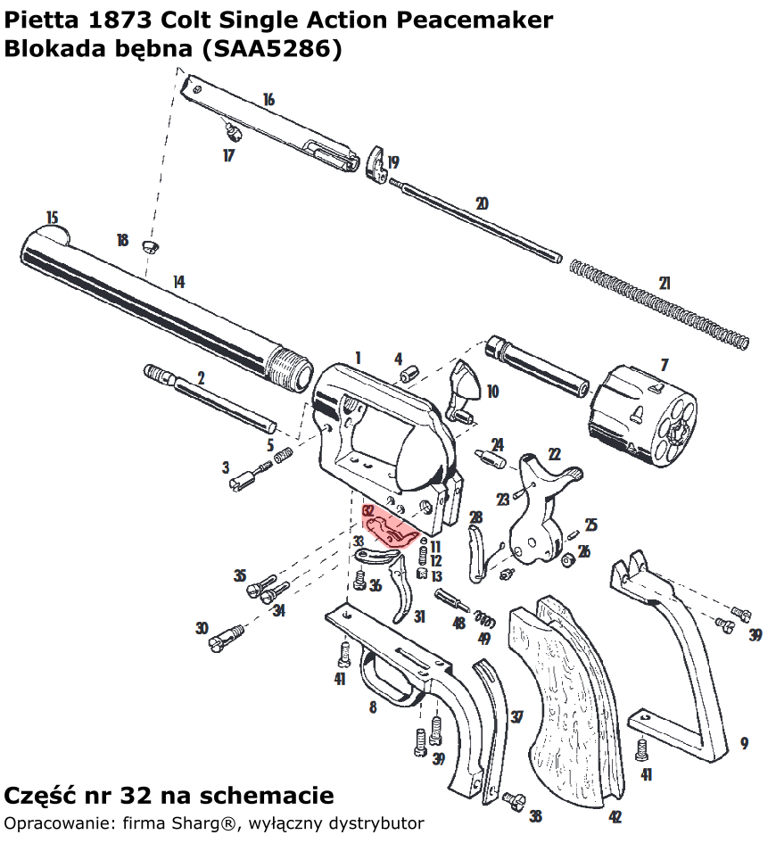 - SAA5286 (serwis) blokady bębna włoskiej firmy Pietta. Do rewolwerów czarnoprochowych 1873 Single Action Steel oraz 1873 Single Action Stainless, najsłynniejszych rewolwerów Samuela Colta znanych również jako Peacemaker / Cattleman...