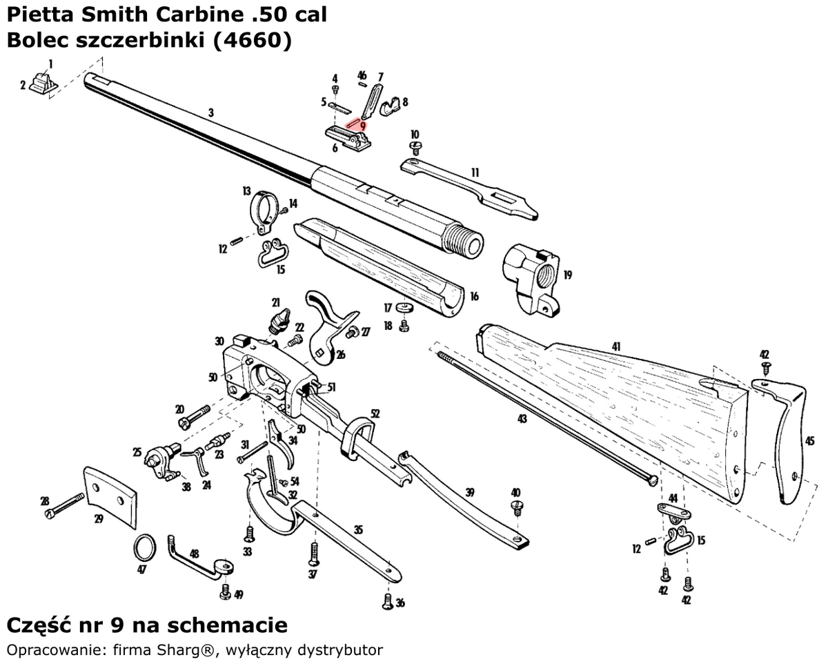- 4660 (serwis) bolec szczerbinki włoskiej firmy Pietta. Pasuje do karabinów czarnoprochowych Smith Carbine Cavalry (SMT50) oraz Smith Carbine Artillery (SMTA50).