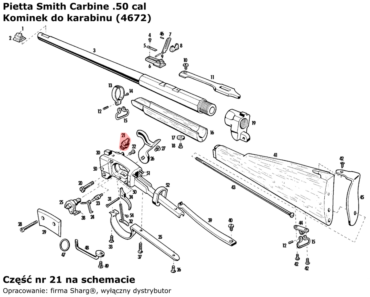 - 4672 (serwis) kominek stalowy włoskiej firmy Pietta do karabinów czarnoprochowych Smith Carbine Cavalry (SMT50) oraz Smith Carbine Artillery (SMTA50). Podczas wymiany zalecane jest nałożenie smaru miedziowego na gwint kominka w celu uniknięcia zapieczeń..