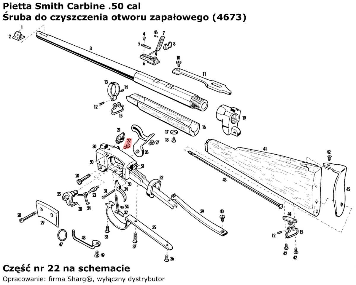 4673 (serwis) śruba nipple channel clean out screw włoskiej firmy Pietta do karabinów czarnoprochowych Smith Carbine Cavalry (SMT50) oraz Smith Carbine Artillery (SMTA50).