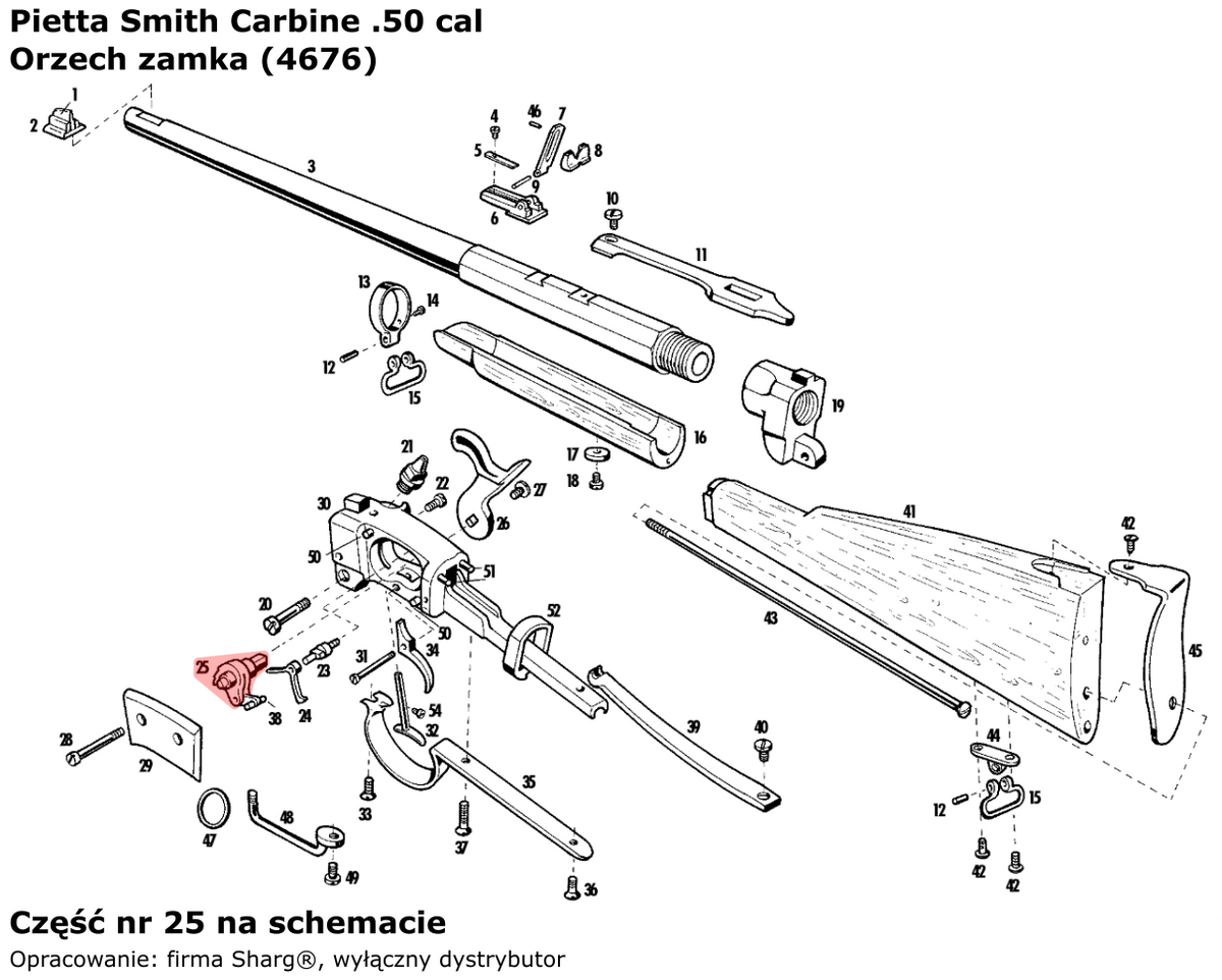 - 4676 (serwis) orzech zamka / tumbler włoskiej firmy Pietta do karabinów czarnoprochowych Smith Carbine Cavalry (SMT50) oraz Smith Carbine Artillery (SMTA50).