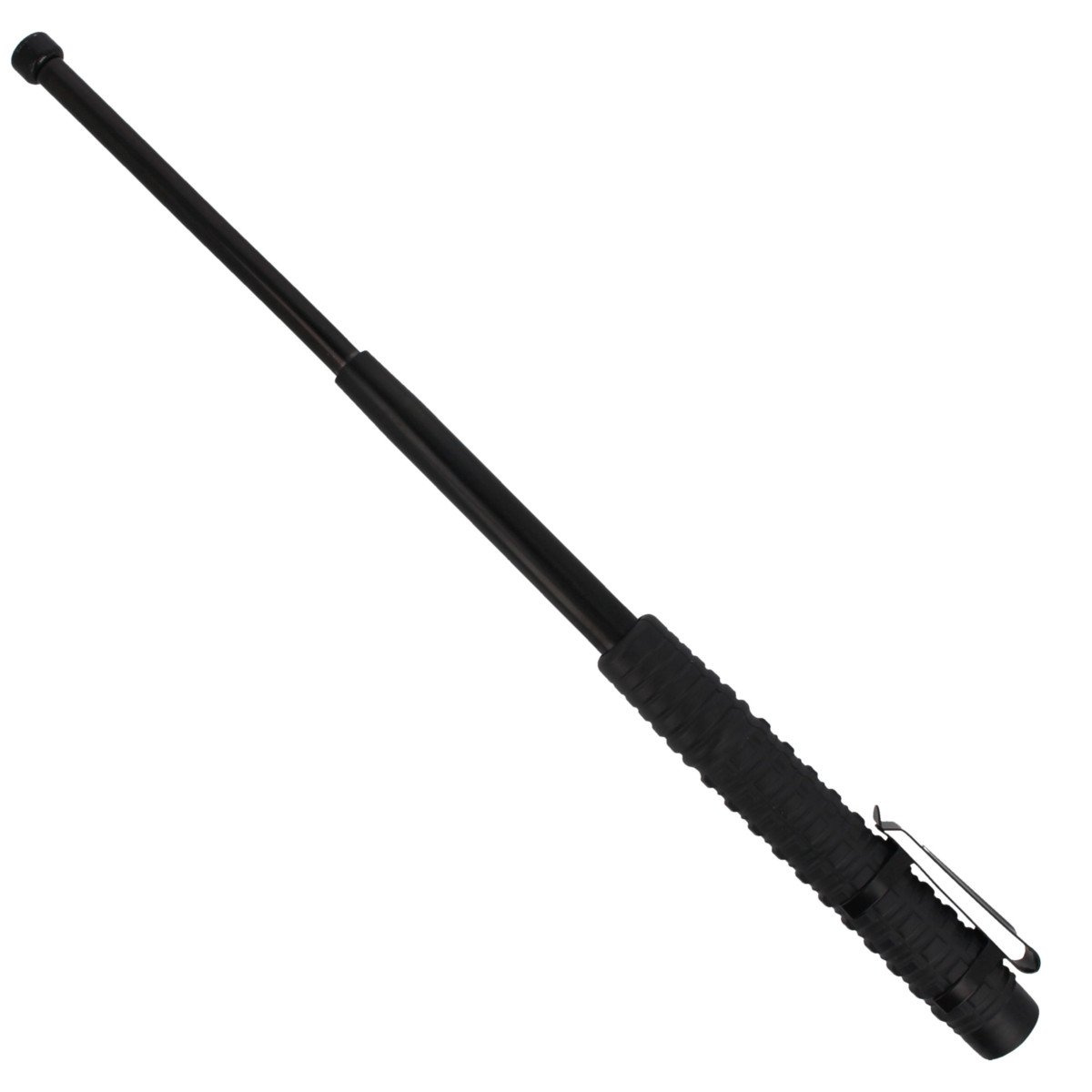 - EXB-18H-BK BC-01, hartowana 18" pałka teleskopowa typu Friction Loc firmy ESP. W zestawie z metalowym klipsem BC-01 przeznaczonym do skrytego przenoszenia batona jak najbliżej ciała. Dla osób ceniących skuteczny zasięg, kompaktowy rozmiar oraz niską wagę