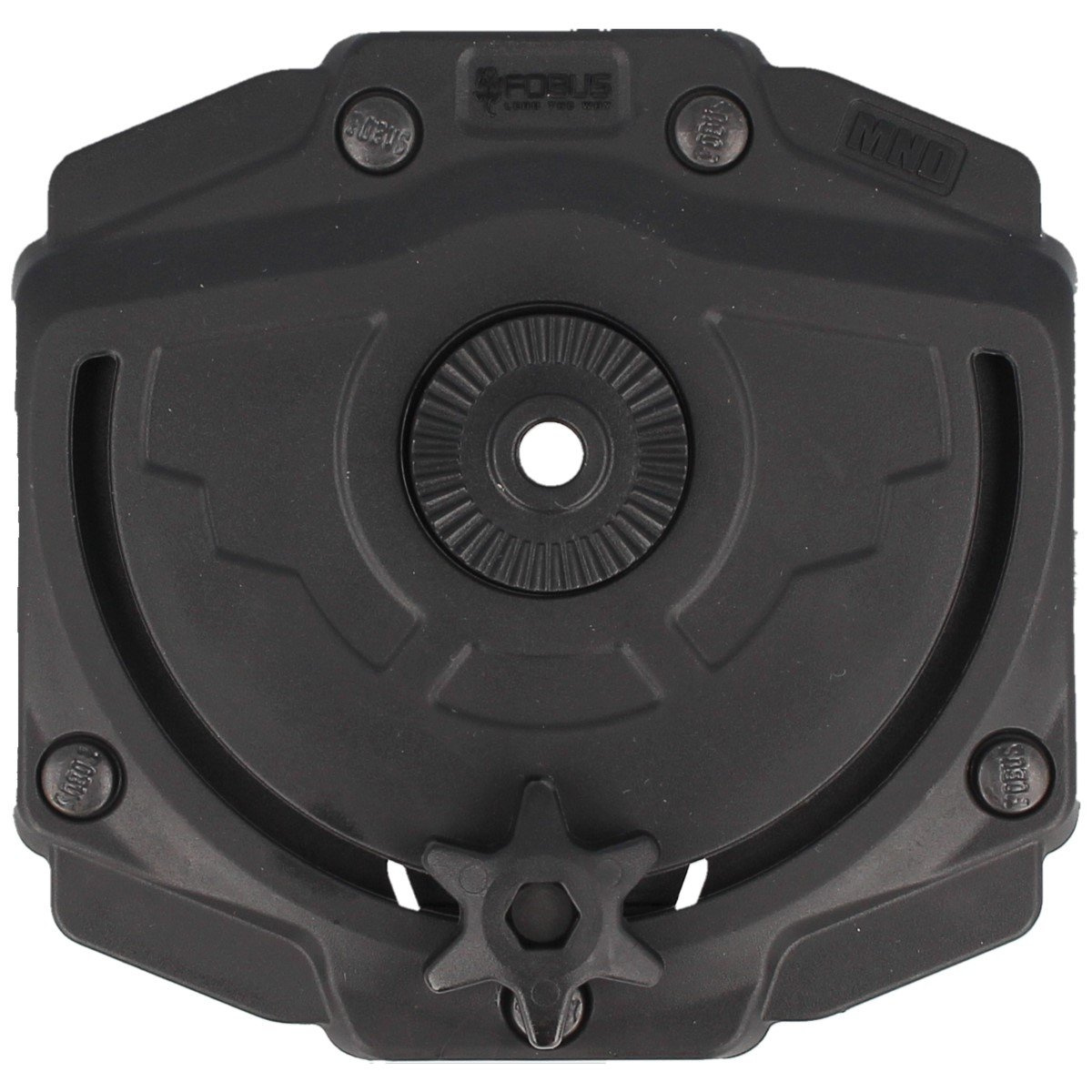 - MND, platforma w standardzie MOLLE. Do mocowania kabur oraz ładownic firmy Fobus wyłącznie z regulacją kąta pochylenia RT (Roto). Do montażu na kamizelce bądź plecaku zaopatrzonym w taśmy w standardzie MOLLE, PALS...