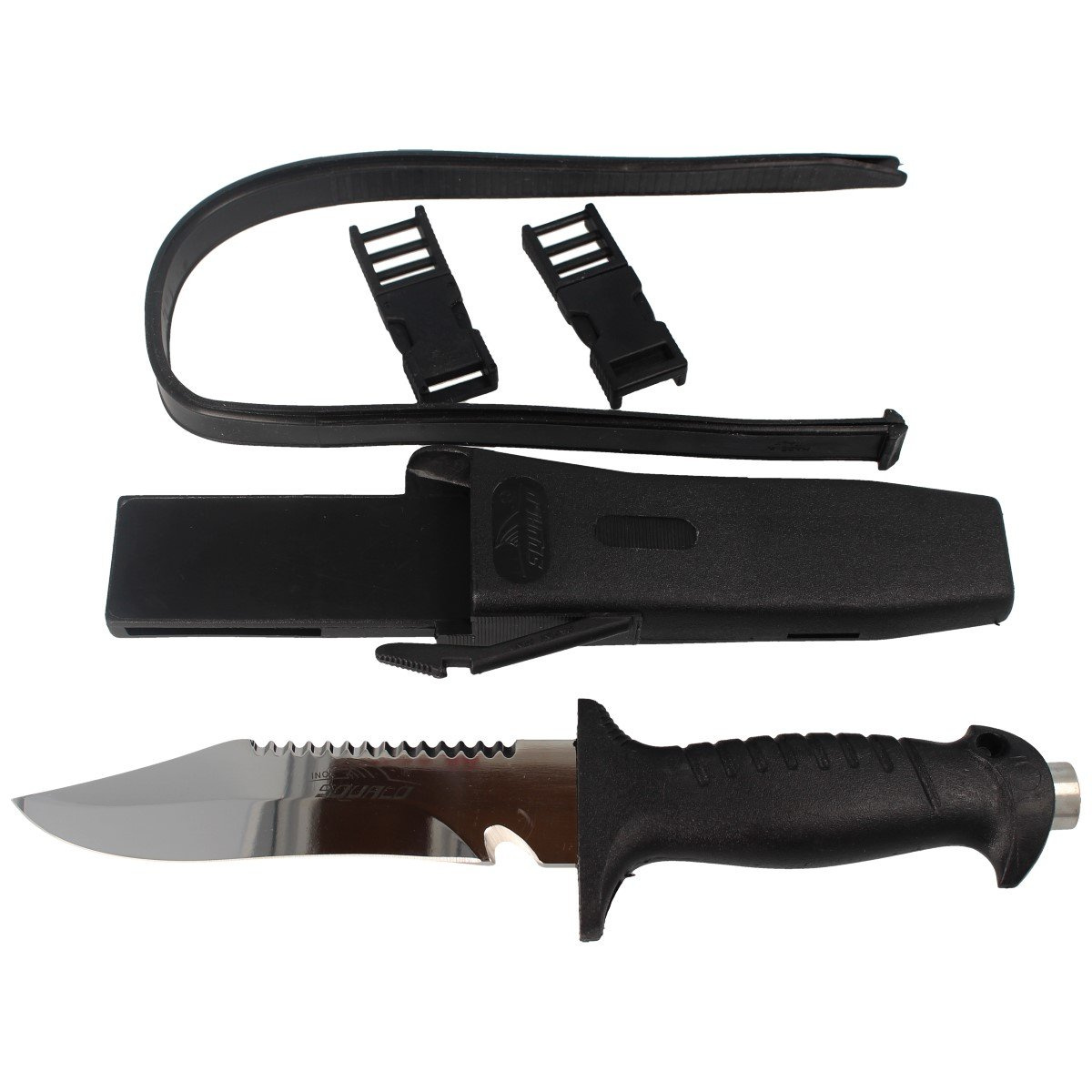 - SQUALO15 MR BLACK, uniwersalny nóż dla nurka z młotkiem firmy MAC Coltellerie. Niezbędny podczas wypraw nurkowych oraz na lądzie. Głownia o profilu clip point z polerowanej stali nierdzewnej W 1.4116 o dużej odporności na korozję. Długość klingi 140 mm.