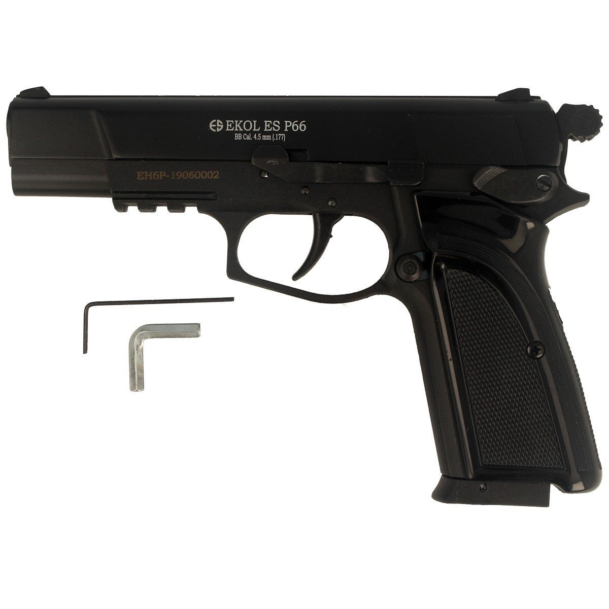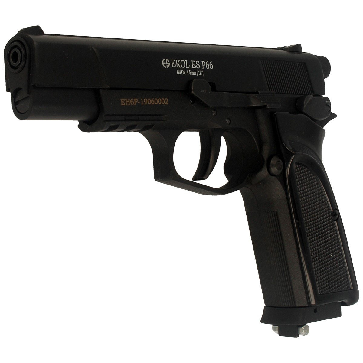 - Ekol ES P66 Czarny ultralekki, samopowtarzalny pistolet pneumatyczny którego konstrukcję oparto na broni sygnałowej. Dzięki tak silnym korzeniom, ta najmocniejsza wiatrówka 150 m/s nadaje się do dynamicznego strzelania sportowego, treningu taktycznego.