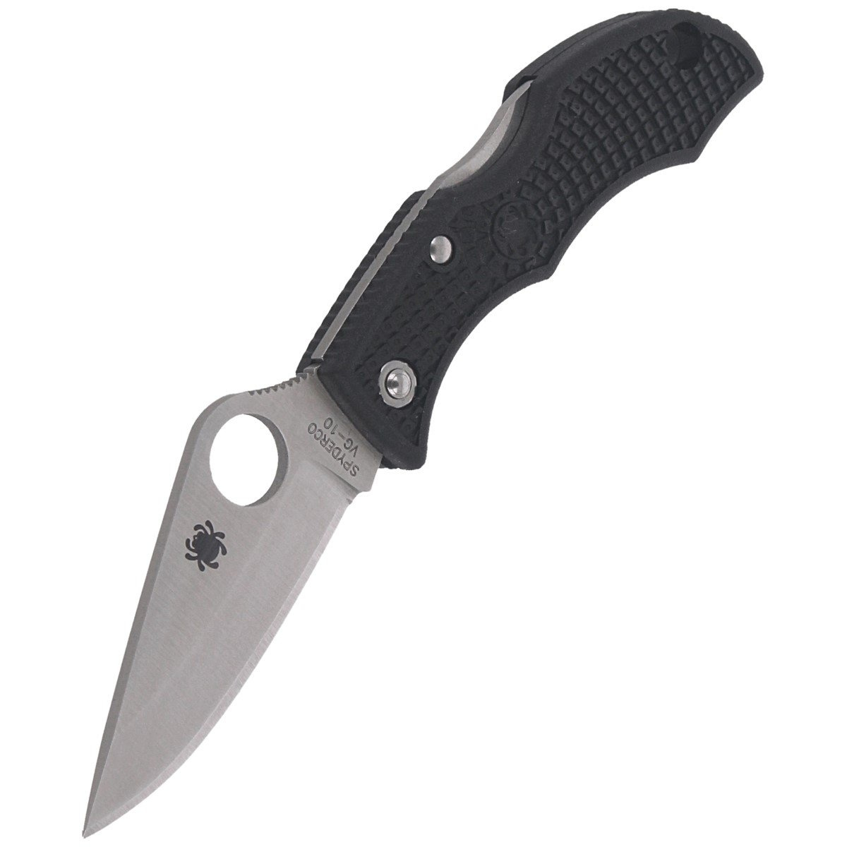 Głownia - o zmodyfikowanym profilu Clip Point, grubości 2 mm, wykonana z japońskiej nierdzewnej stali VG-10 (łatwej do naostrzenia, dobrze trzymającej ostrość). Klinga hartowana w przedziale 59-61 HRC. Powłoka Satin Finish (pół-mat) eliminuje odblaski. Ostrze gładkie Plain wyprowadzono szlifem płaskim (Saber Grind). Okrągłe wycięcie SpyderHole (patent Spyderco) umożliwia otwarcie noża kciukiem. Solidny Back-Lock z wycięciem Boye Detent, zapobiegającym przed przypadkowym zwolnieniem blokady przy mocnym uchwyceniu noża. Karbowana rampa pod kciuk.