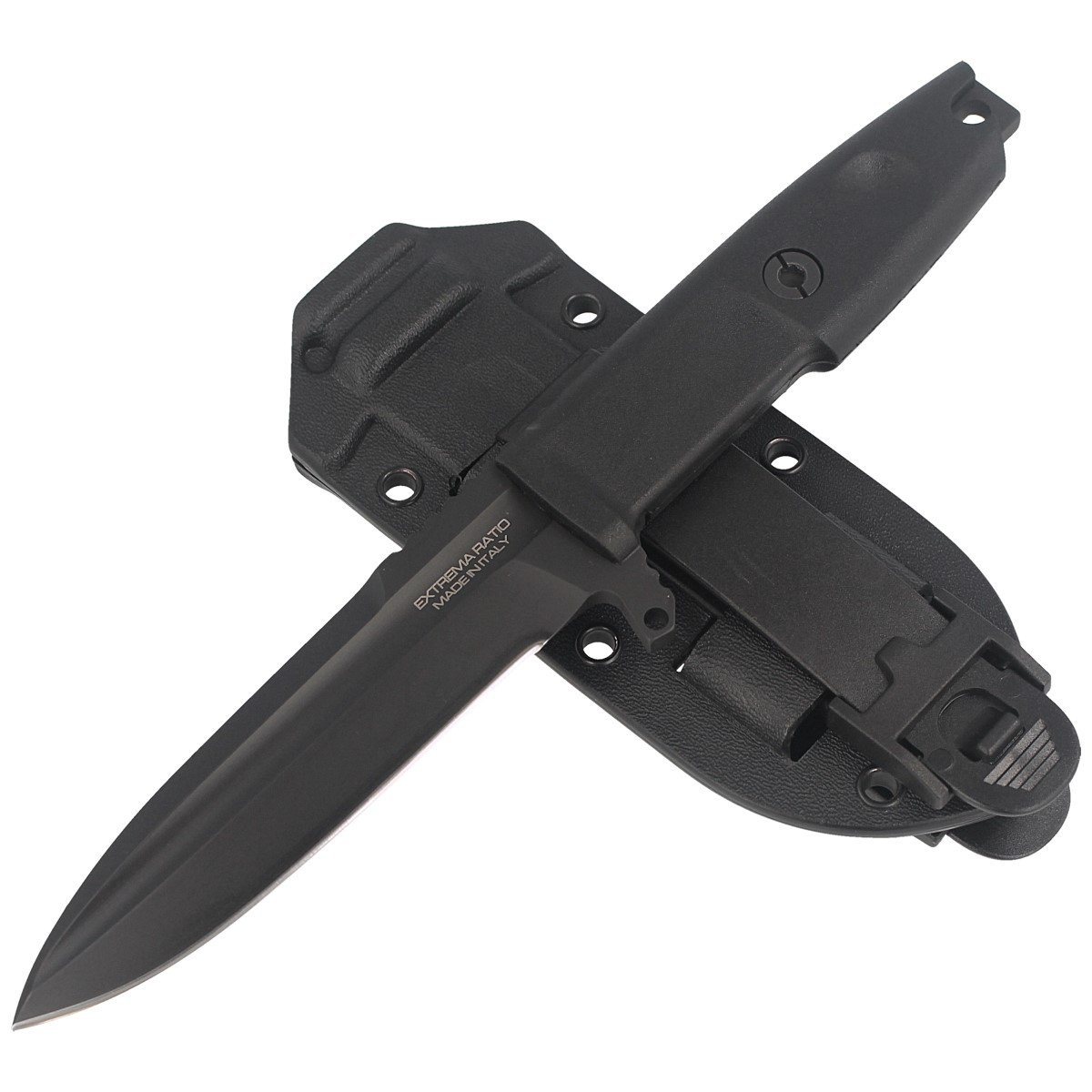 Pochwa - lekka, wykonana z tworzywa Kydex w kolorze czarnym. Uniwersalna ażurowa, kabura zabezpiecza nóż przed wypadnięciem oraz ułatwia osuszanie głowni. Po obu stronach kabury, system taśm z elastycznego polimeru umożliwiający szybkie mocowanie pochwy pod taśmy systemu M.O.L.L.E. (Modular Lightweight Load-carrying Equipment) lub na pasie.
