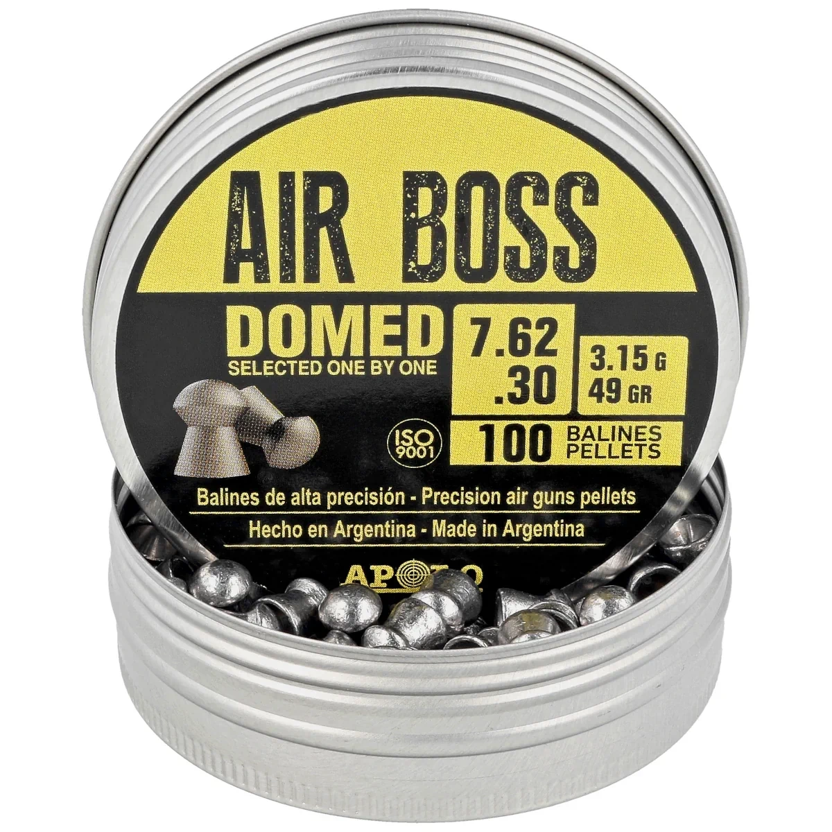 - AirBoss Domed .30 ciężki, selekcjonowany sztuka po sztuce śrut w kal 7,62 mm. Amunicja klasy Premium firmy Apolo w doskonałej cenie! Do strzelań na dużych dystansach. Obły profil zapewnia potężną siłę obalającą. Gładki kielich bez moletowania. Op. 100szt