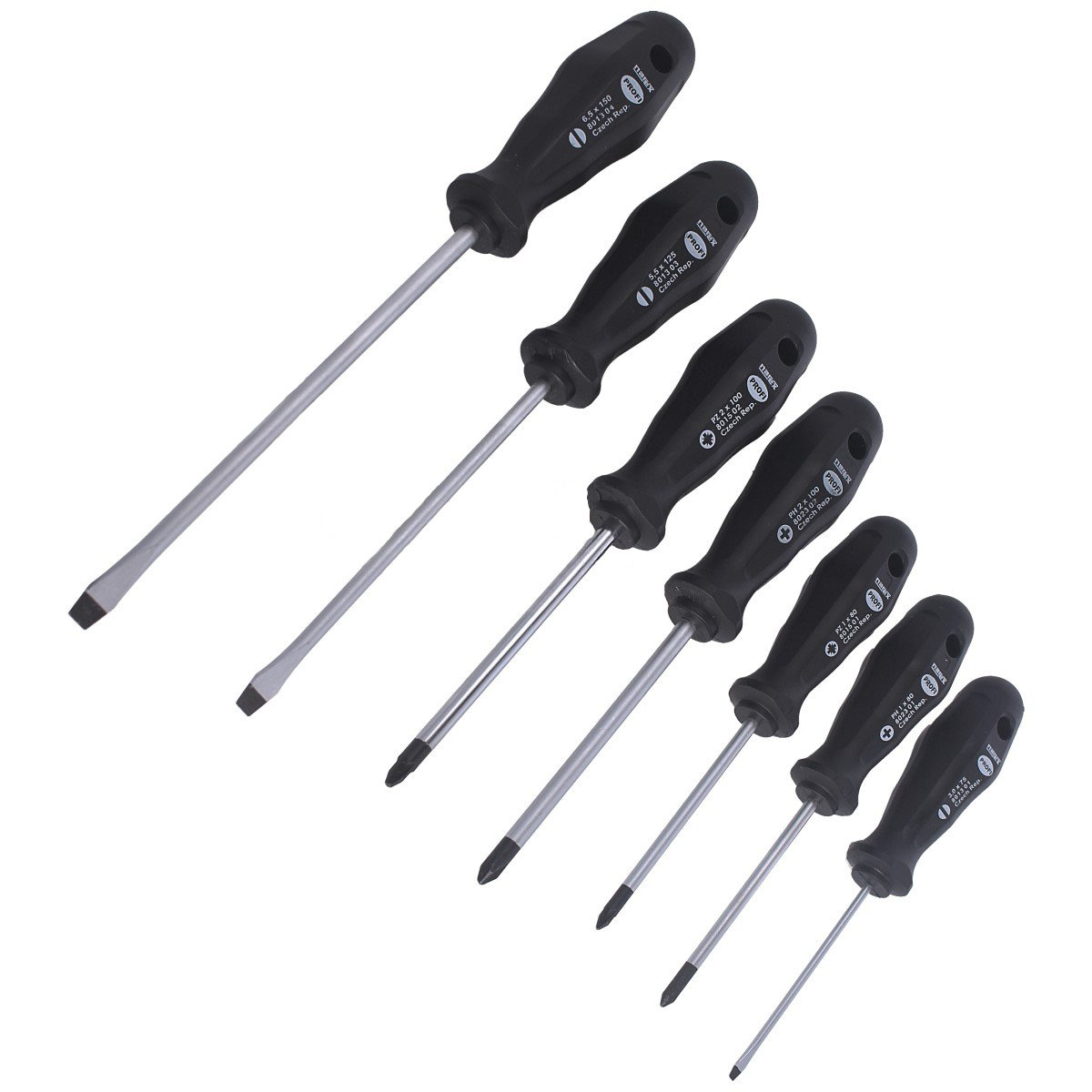 Kompletny zestaw – zawiera 7 wkrętaków dostosowanych do różnych typów śrub: