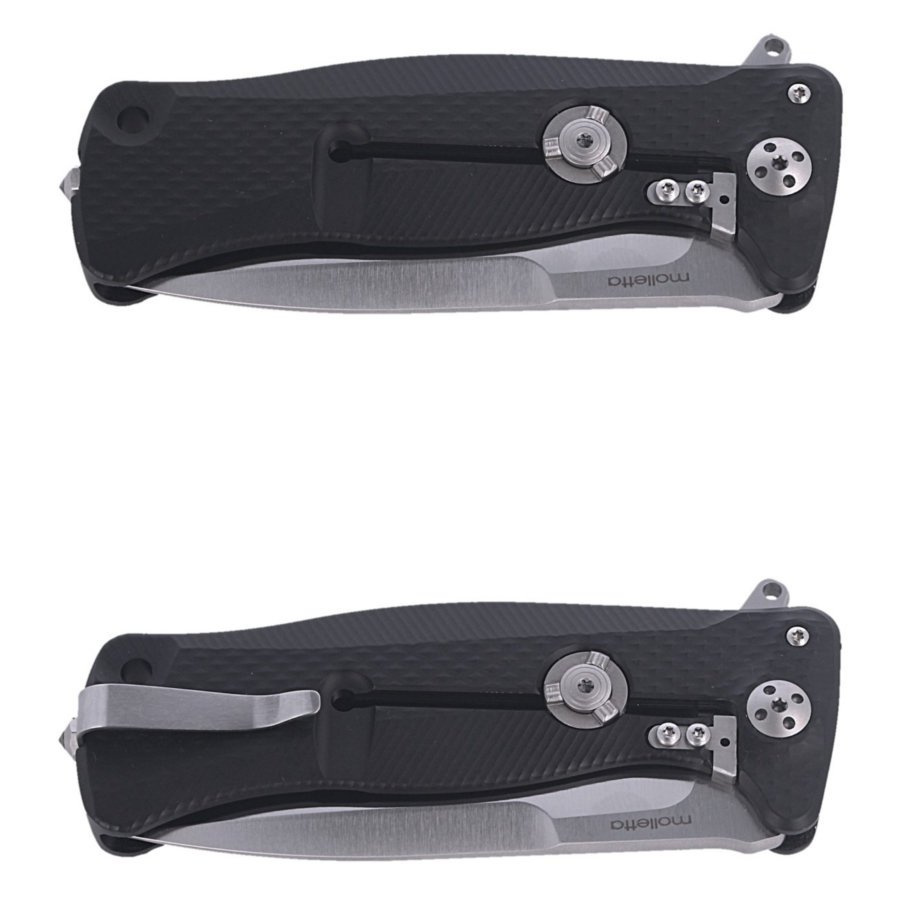 - SR11A Black Aluminium, Satin Blade folder włoskiej manufaktury LionSteel z ekskluzywną technologią Solid. Klinga ze Sleipner szwedzkiej wysokostopowej stali narzędziowej o dużej odporności na zużycie i na wykruszanie. Blokady głowni Frame-Lock, RotoLock