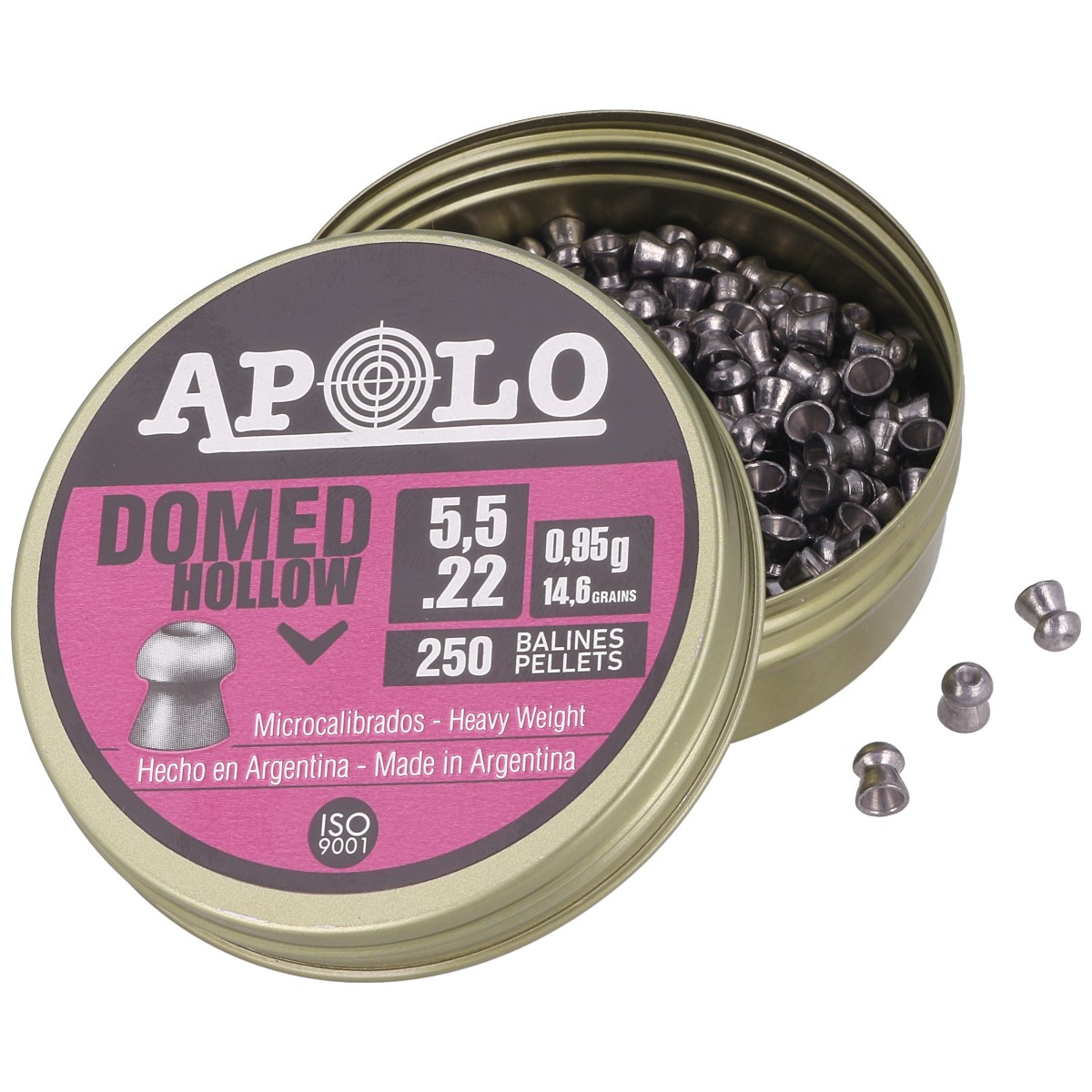- Domed Hollow .22 ciężki śrut Apolo w kal. 5,5 mm o płaskiej trajektorii do strzelań na dużych dystansach w doskonałej cenie! Do rozbijania celów, polowań na szkodniki. Stop ołowiu pozostawiający znikomy osad. Opakowanie 250 szt.