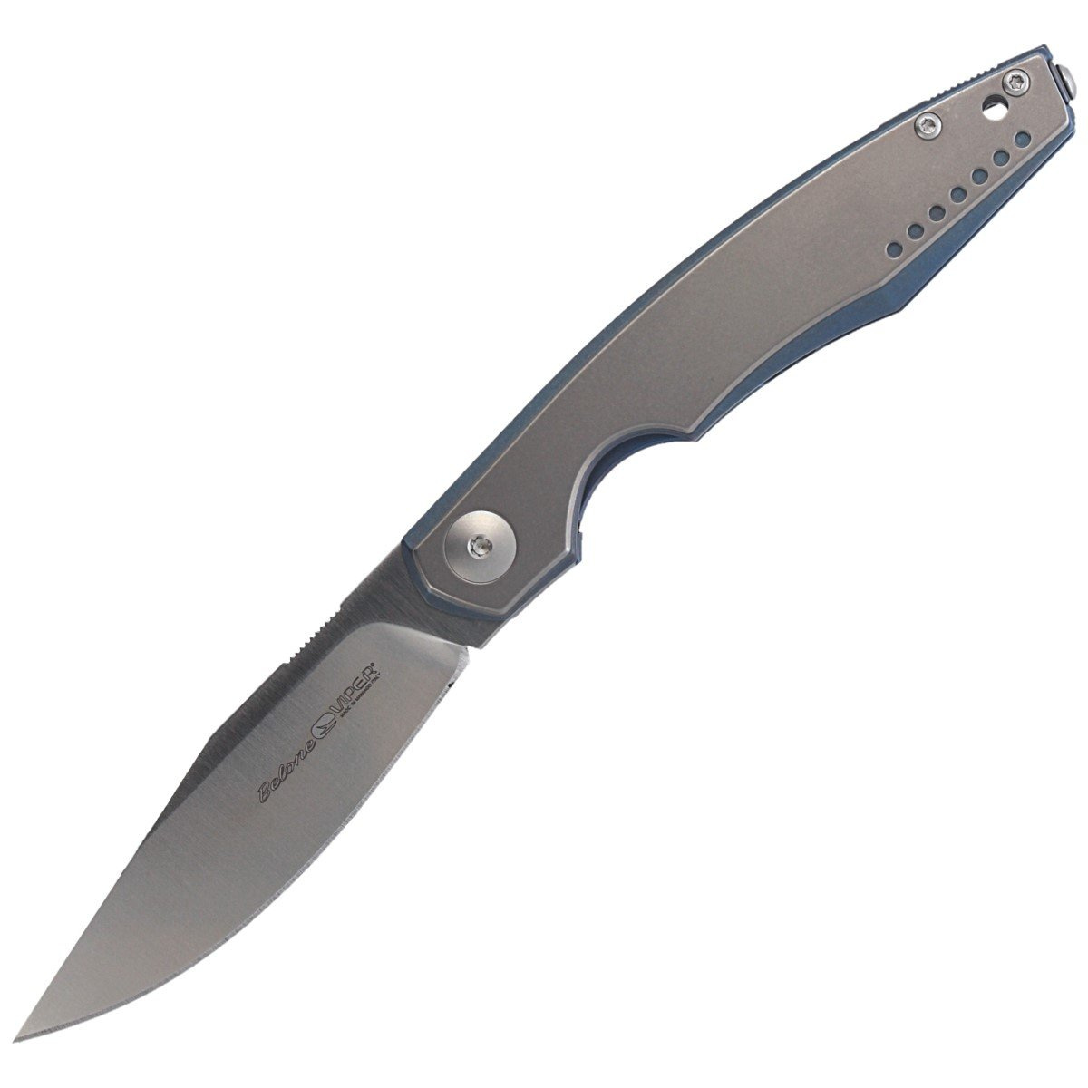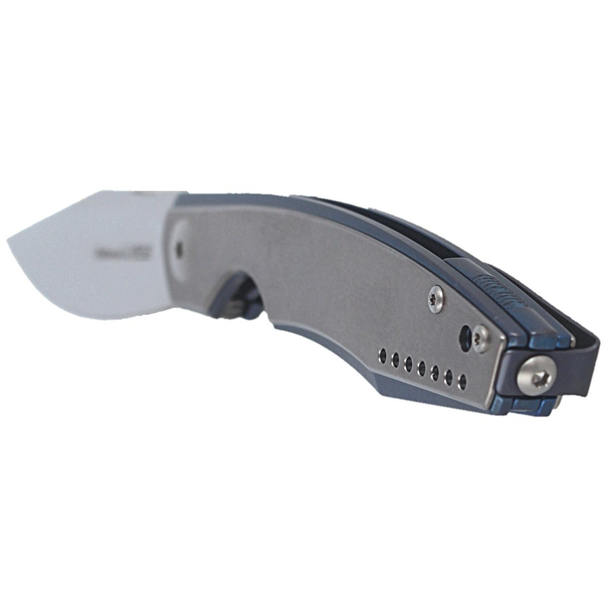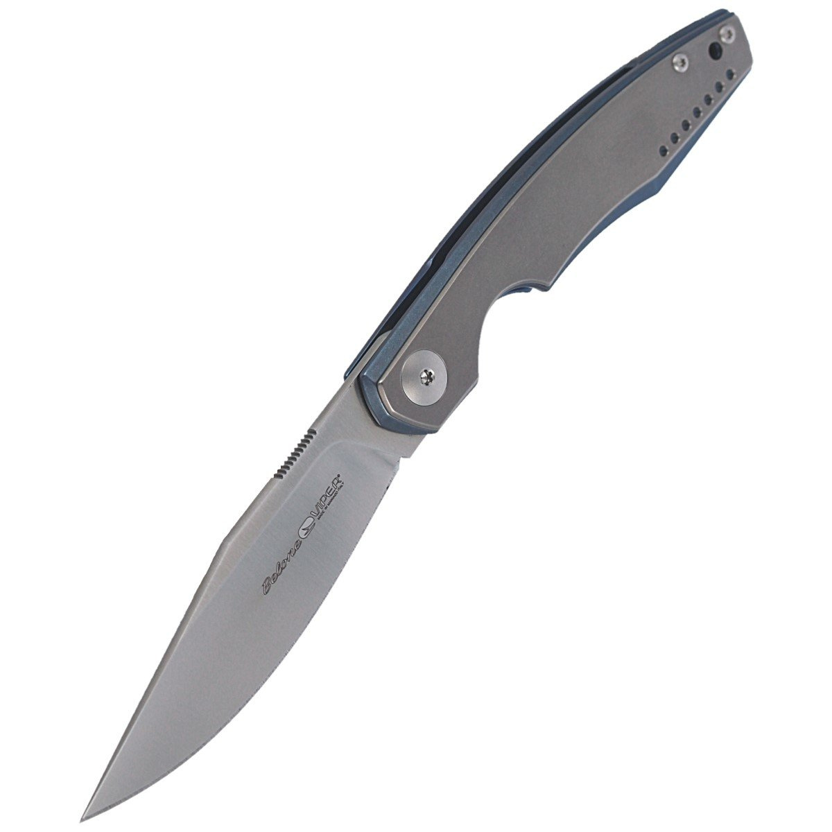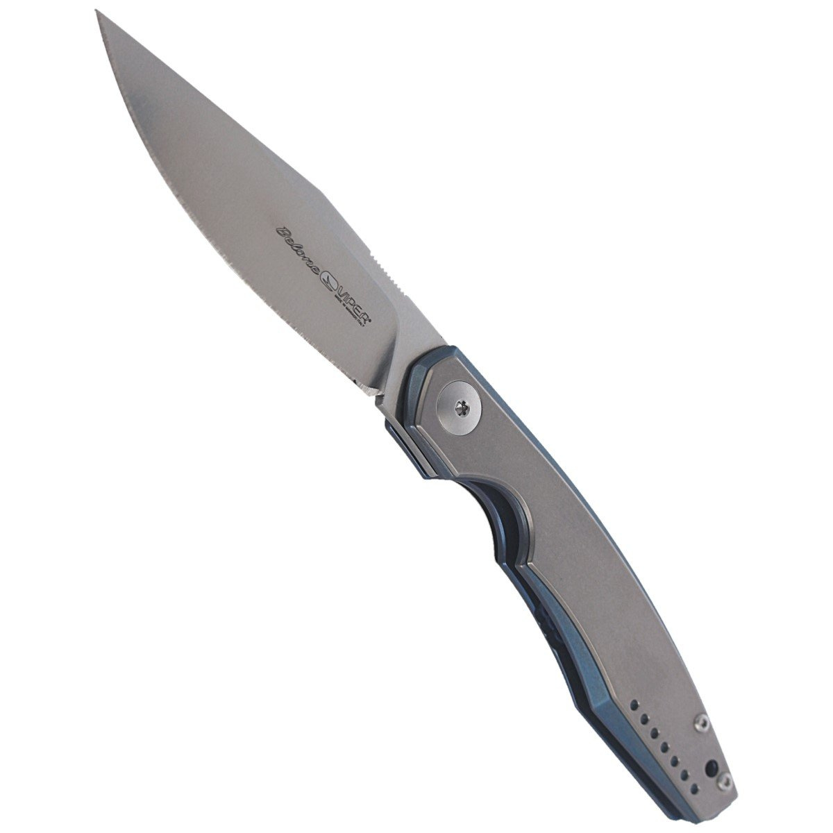 - Belone Blue / Gray Titanium, Satin kształt wywodzący się z tradycyjnych noży włoskich. Zaprojektowany zgodnie z minimalistycznym stylem duńskiego knifemaker'a Jespera Voxnaesa. Lekki nóż ozdobiony wyrafinowanymi detalami!