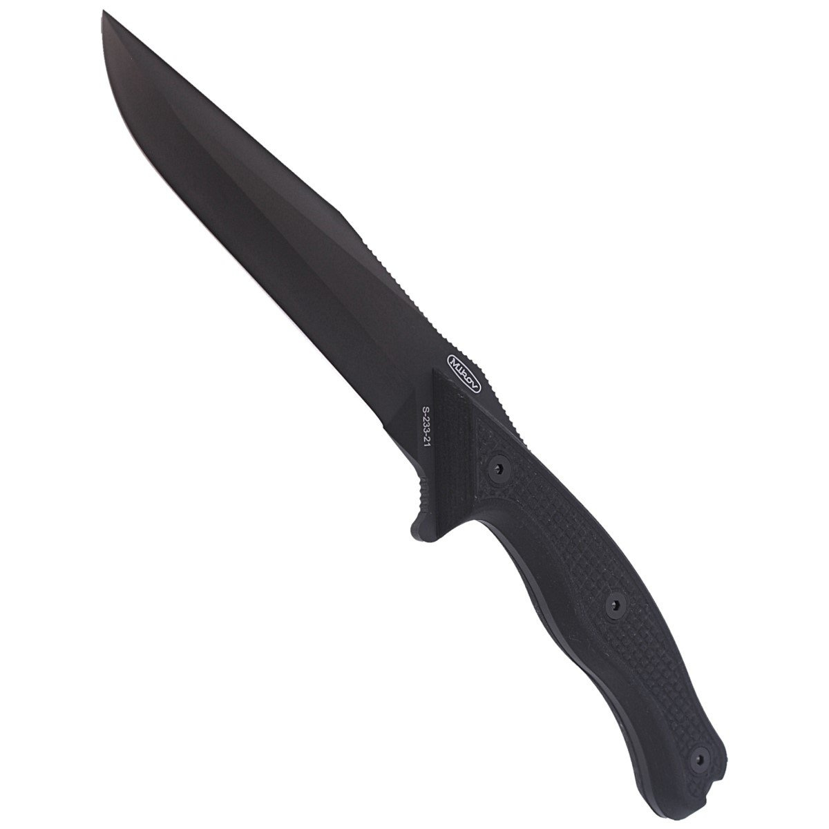 • Storm Black G10, Black DLC, limitowana edycja noża taktycznego o konstrukcji full-tang wyprodukowanego przez czeską firmę Mikov. Głownia ze stali nierdzewnej Böhler N690 pokryta czarną powłoką DLC, rękojeść z kompozytu G10, pochwa z Cordury.