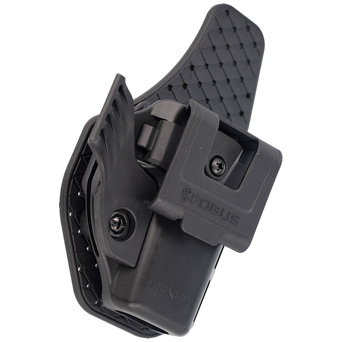 APN43 niskoprofilowa prawo / lewostronna kabura otwarta izraelskiej firmy Fobus typu FIT (dedykowana do broni). APN to kabura wewnętrzna IWB (Inside the Waist Band) zaprojektowana do skrytego noszenia po wewnętrznej stronie spodni, mocowana zaczepianym o pas hakiem J Hook lub kabura zewnętrzna typu OWB (Outside the Waist Band) przystosowana do standardowego przenoszenia na pasie. Bardzo trwała i lekka, doskonale wyprofilowana dla maksymalnego komfortu, świetnie przylega do sylwetki pozwalając na skryte przenoszenie broni, niezwykle wygodna podczas codziennego noszenia w ukryciu, wentylowana, można ją myć w całości. Przystosowania kabury zarówno dla prawo jak i leworęcznych użytkowników bez żadnych narzędzi.