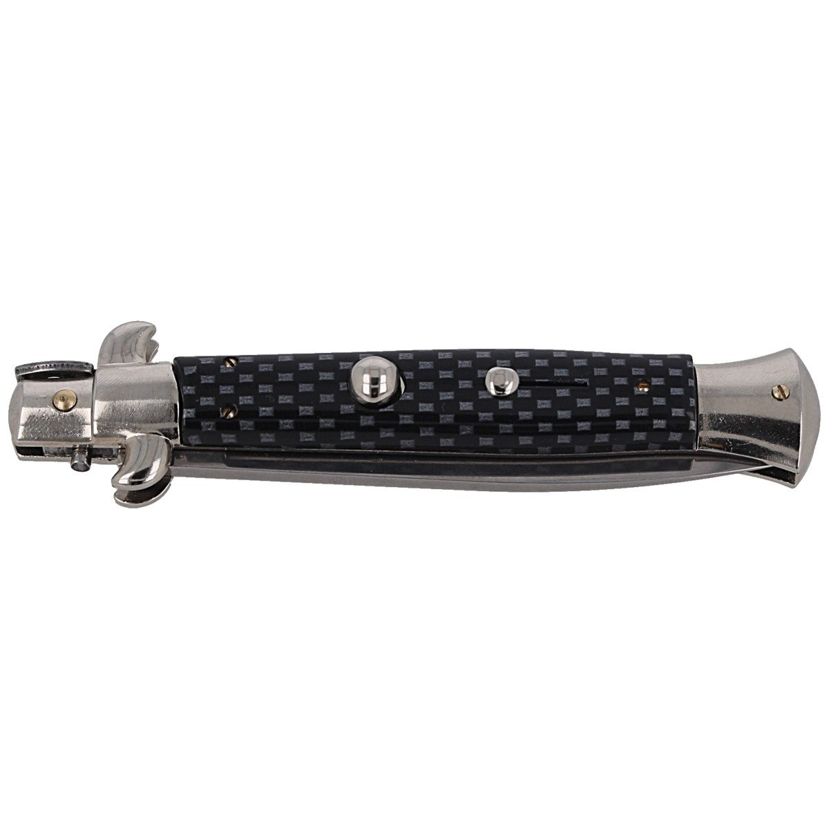 - Italian Stiletto Carbon Fiber Dagger 23cm tradycyjny włoski nóż sprężynowy rękojeść z włókna węglowego. Otwarcie klingi musi odbyć w ciągu setnych sekundy. Ręcznie wykonany z zasadami włoskiego rzemiosła.