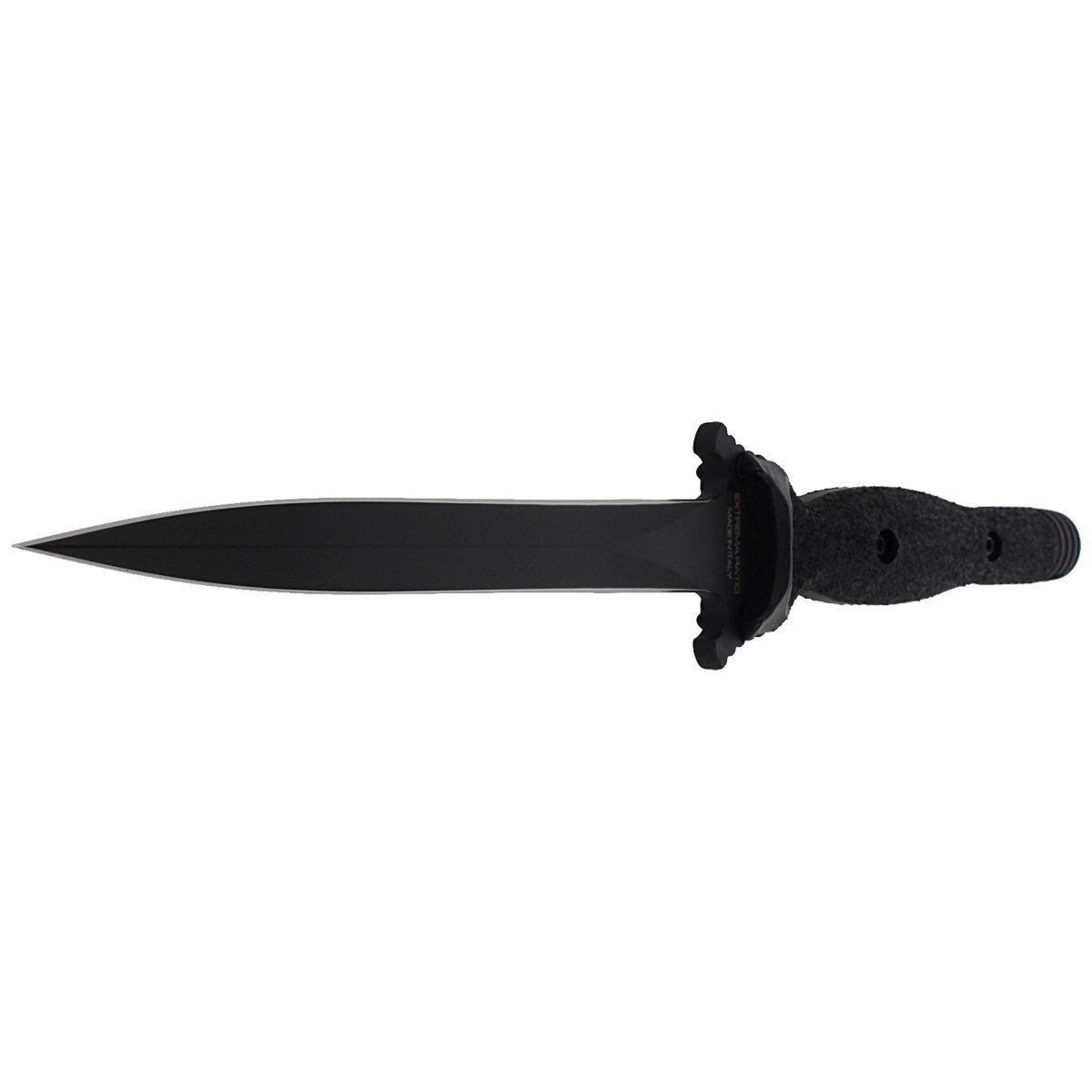 Głownia - niezwykle smukła, grubości 6.3 mm o kształcie Dagger z obusiecznym symetrycznym ostrzem. Klingę pokryto polerowaną chemicznie, nierefleksyjną powłoką MIL-C-13924 BURNISHING. Obustronne gładkie ostrze Plain wyprowadzono szlifem płaskim (Flat grind) zapewniającym doskonałe właściwości tnące a zwłaszcza penetracyjne. U nasady głowni double finger guard obustronny jelec / karbowana osłona chroniąca dłoń przed zsunięciem się na ostrze.