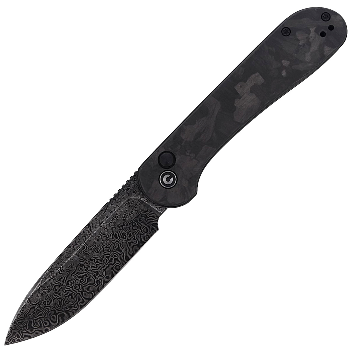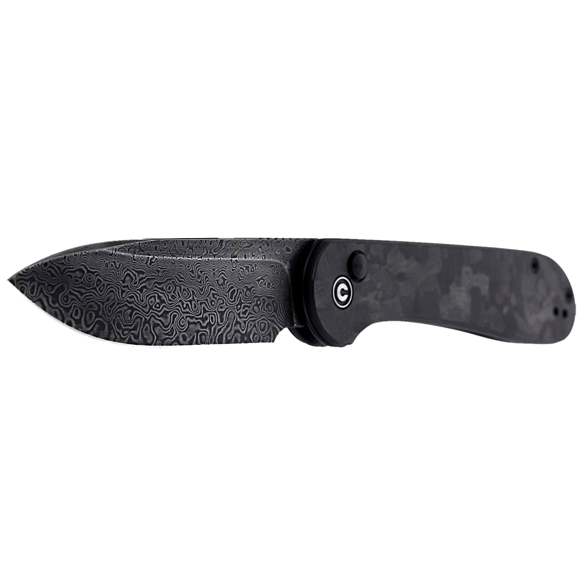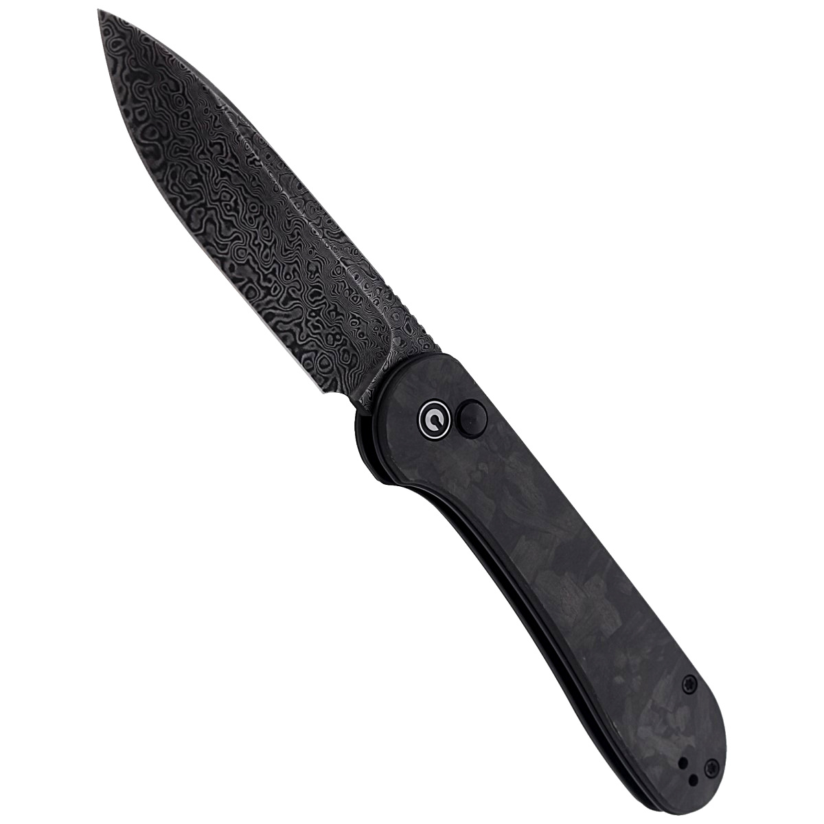 Elementum Button Lock Marble Carbon Fiber Black, Black Damascus. Oryginalny Elementum jest kompaktowym, uniwersalnym nożem składanym w doskonałej cenie, zaprojektowanym z myślą o łatwym przenoszeniu. Będąc jednym z najlepszych folderów E.D.C., zyskał uznanie na targach nożowych Blade Show zdobywając nagrodę roku Best Buy of The Year 2021. Nóż Button Lock Elementum to wydłużona o około 1 cal wersja z klingą z czarnego Damastu, odwracalnym klipsem i blokadą Button Lock z przyciskiem umożliwiającym otwarcie grawitacyjne ostrza. Bestseller!