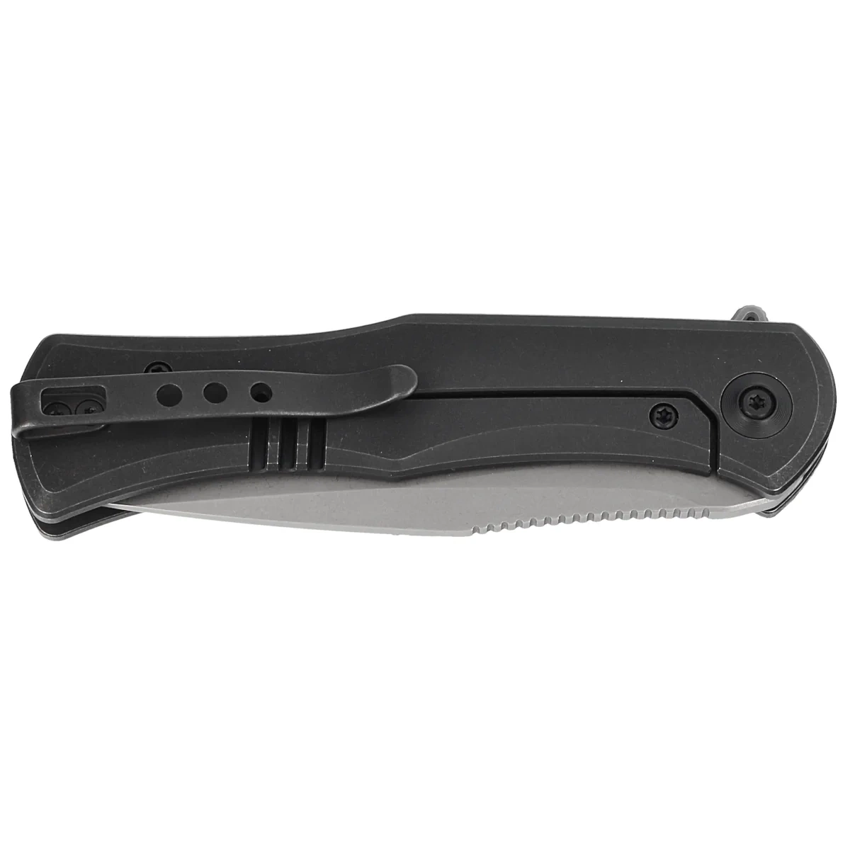 Głownia - typu drop point wykonano ze stali CPM 20CV, obecnie jednej z najlepszych stali narzędziowych na świecie. Otwierany za pomocą flippera, dzięki czemu mogą z niego bez problemu korzystać osoby prawo i leworęczne. Za gładką pracę mechanizmu otwierającego odpowiadają ceramiczne łożyska kulkowe. Niewielka grubość ostrza w połączeniu z wysokim, płaskim szlifem daje nam właściwości tnące niemal na poziomie brzytwy. Na grzbiecie znajdziemy perfekcyjnie wykonany "jimping", nacięcia na których możemy położyć palec poprawiając w ten sposób uchwyt i kontrolę nad nożem podczas używania. Klinga została wykończona metodą "gray stonewash". Całość blokowana jest sprawdzoną i popularną blokadą frame lock ze stalową wkładką zabezpieczającą przed wycieraniem czoła blokady.