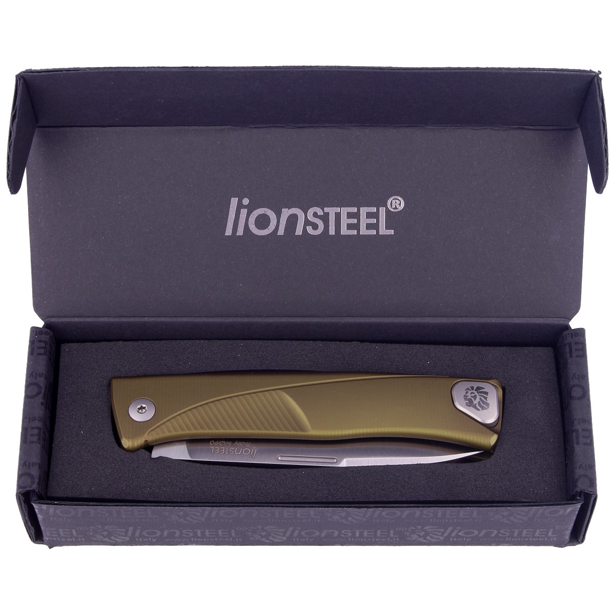 Thrill Green Aluminium, Satin ultralekki, klasyczny folder włoskiej manufaktury LionSteel z rękojeścią wytworzoną w technologii Solid®. Dowód osiągnięcia wysokiego rozwoju technologicznego wykorzystywanego przy produkcji noży. Wyposażony w mechanizm SlipJoint, "no lock", zbudowany z jednego kawałka materiału. Doskonałe narzędzie do większości prac związanych z cięciem, przyjazne społecznie, legalne w większości krajów.