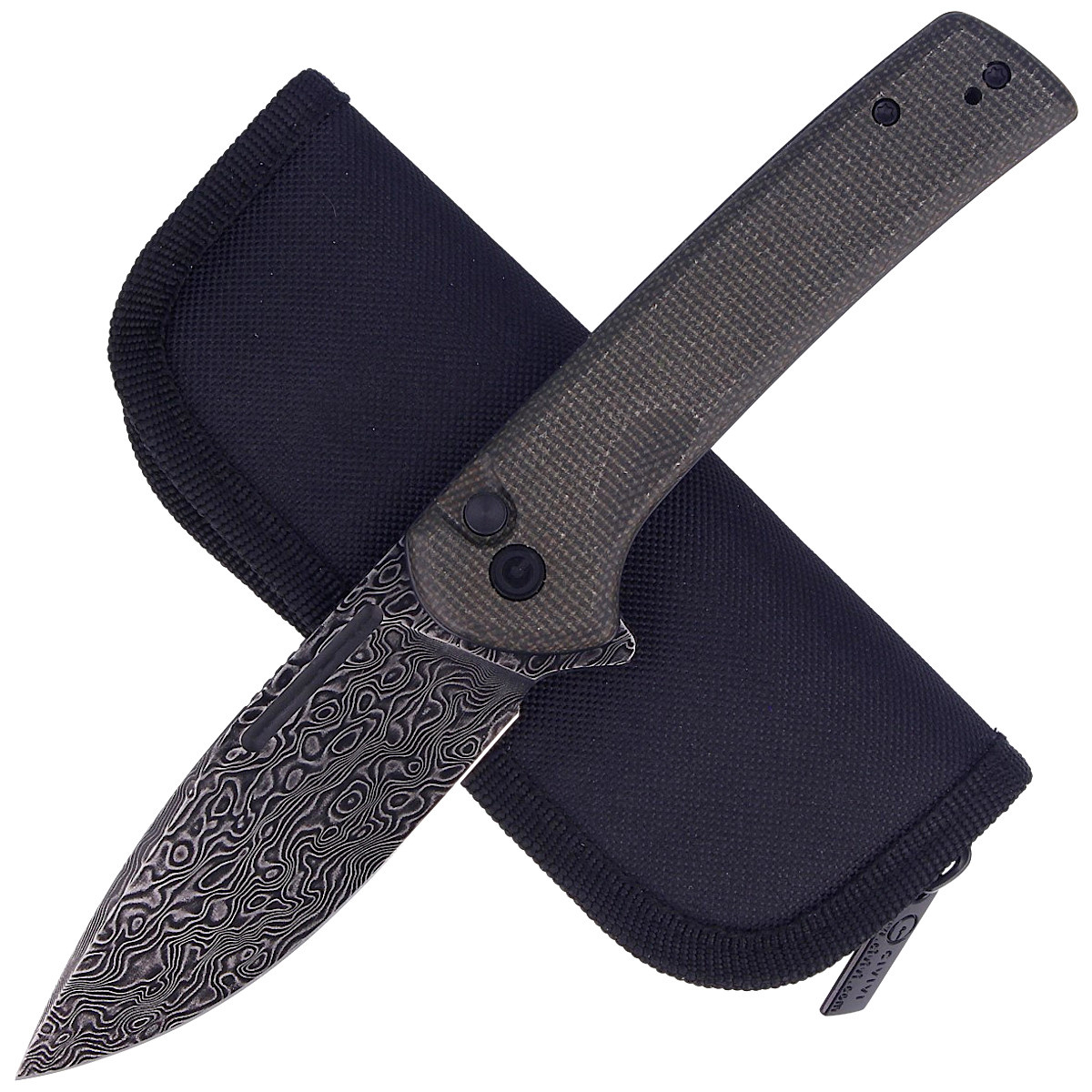 - Conspirator Dark Green Micarta, Damascus doskonały nóż EDC. Głownia Drop Point ze stali Damascus o niepowtarzalnym wzorze, otwierana grawitacyjnie lub za pomocą szybkiej płetwy Flippera. Okładziny z tworzywa Micarta. Bestseller!