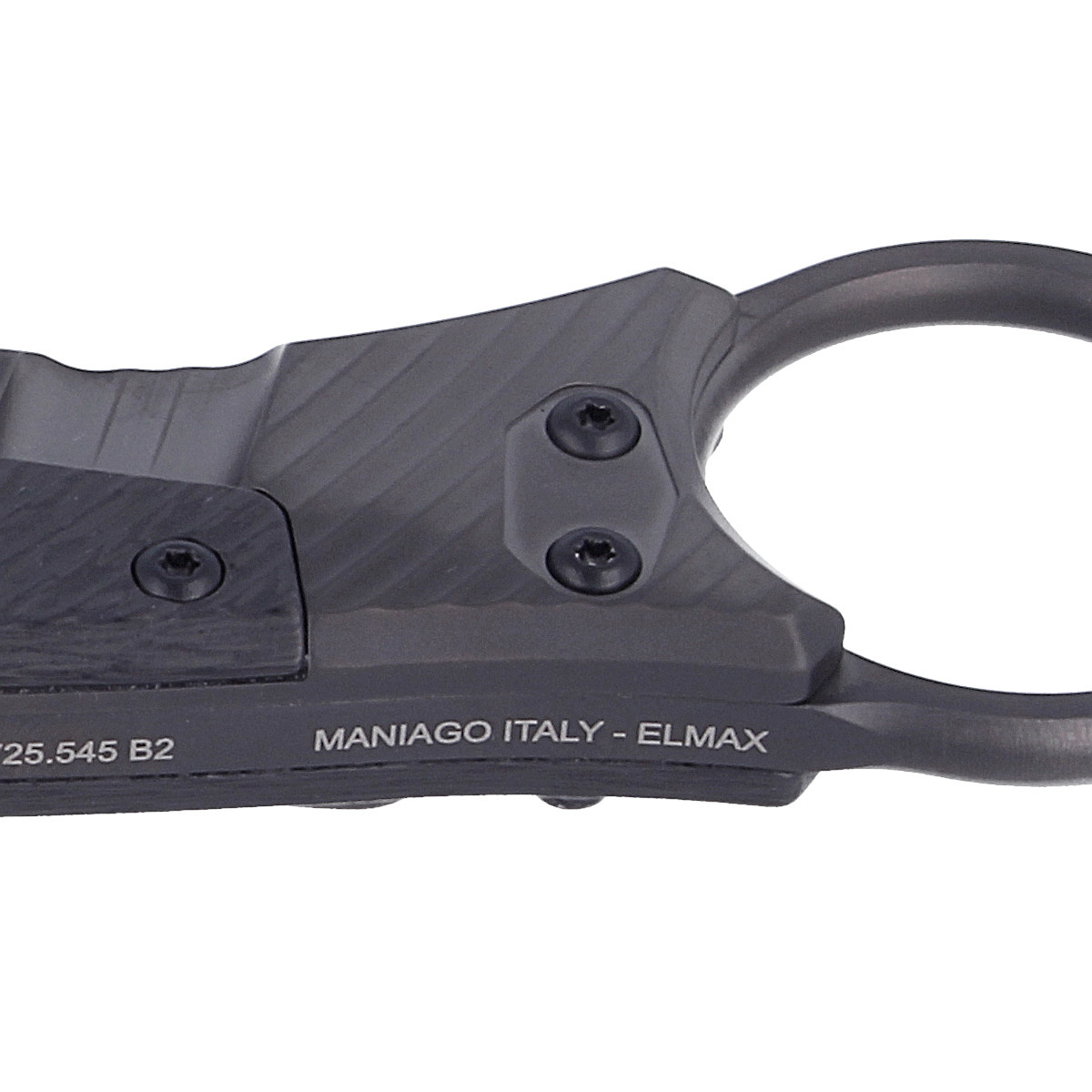 Black Bird by Bastinelli Carbon Fiber/Gray Ti, PVD Elmax karambit włoskiej firmy FOX. Ostrze Hawkbill z powłoką PVD, klips Tip-Up, system szybkiego otwarcia klingi oparty o zmodyfikowany hak Emerson. Projekt Bastinelli, amerykańskiego knifemaker'a.
