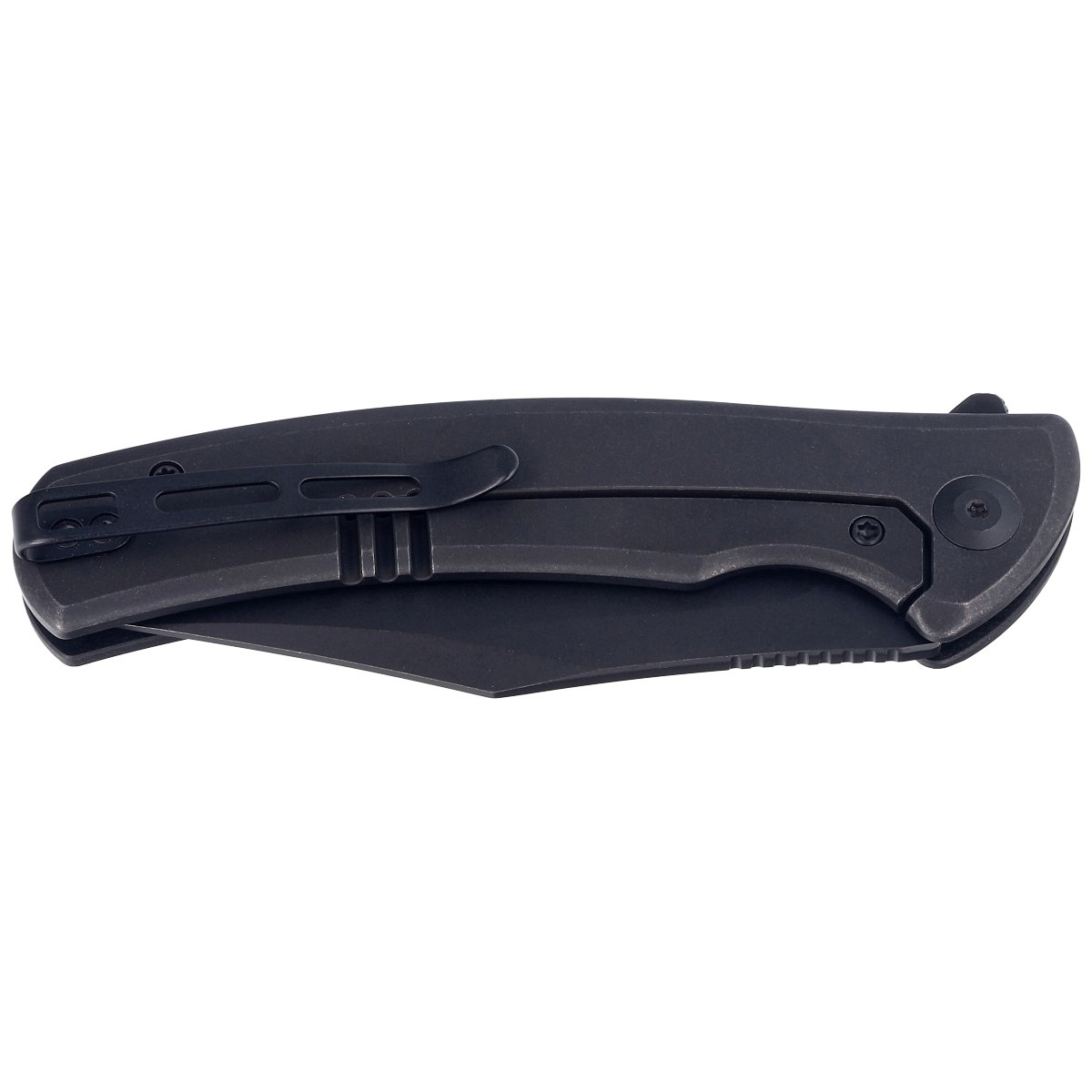 Głownia - typu Clip Point o wyraźnie zaznaczonym brzuchu z czarnym wykończeniem metodą Black Stonewashed. Niewielka grubość klingi w połączeniu z wysokim, płaskim szlifem daje doskonałą geometrię krawędzi tnącej oraz ekstremalną wydajność cięcia. Ceramiczne łożyska kulkowe wspomagają płynną pracę mechanizmu otwierającego klingę, którą można otworzyć za pomocą szybkiej płetwy flippera (index-finger flipper). Po otwarciu płetwa tworzy mini-gardę zapobiegającą ześlizgnięciu się dłoni na ostrze. Na grzbiecie klingi upper jimping, karbowane oparcie pod kciuk. Całość blokowana jest solidną blokadą Frame Lock.