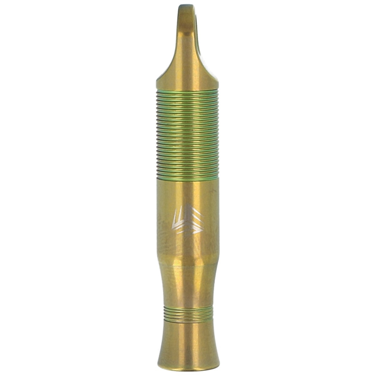 Whistle, Green Titanium wykonany z wytrzymałego anodyzowanego na zielono tytanu. Gwizdek sygnalizacyjny, który nigdy Cię nie zawiedzie tak, jak inne gwizdki. Emituje dźwięk o natężeniu sięgającym 120 decybeli, a ponieważ waży zaledwie kilka gram, jest doskonałym dodatkiem do breloka na klucze lub zestawu ratunkowego.