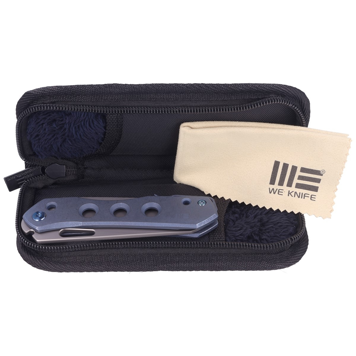 Nóż składany WE Knife Vision R Blue Titanium, Silver Bead Blasted CPM 20CV by Snecx Tan (WE21031-3)