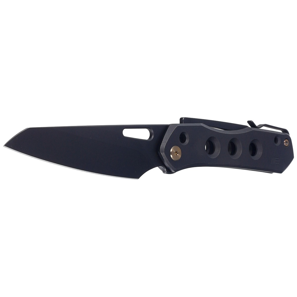 Rękojeść - to grube kawałki tytanu 6AL4V, połączone ze sobą tulejami dystansowymi. Prostota i solidność konstrukcji dają pewność wieloletniego użytkowania. Rękojeść została odciążona serią otworów w centrum okładzin. Klips dwupozycyjny (góra), wykonany z tytanu, umożliwia przenoszenie noża w pozycji tip-up. Zwraca uwagę jego nietypowe umieszczenie, na górze noża, a nie jak zwykle z boku. Rozwiązanie zaskakująco wygodne, pozwalające nosić nóż zarówno z lewej jak i prawej strony bez używania dodatkowych otworów i przekładania klipsa. W tylnej części znajduje się otwór do przewleczenia linki zabezpieczającej lub ozdobnej. Podobnie jak w innych modelach, oś pivota ozdobiona jest stylizowanym logiem producenta.