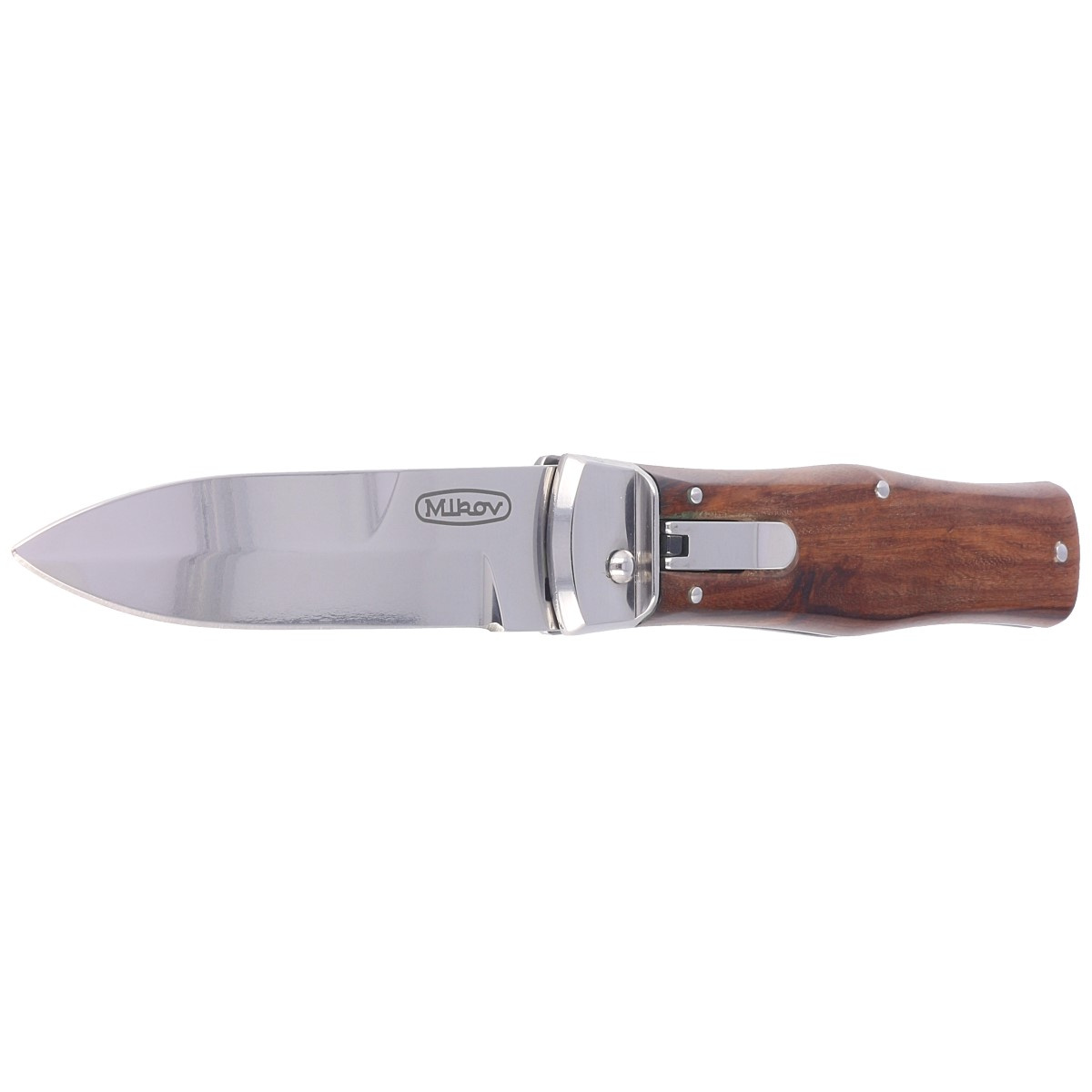 Predator Palisander Santos, Mirror nóż automatyczny (swichblade) czeskiej firmy Mikov z Mikulasovic z klingą ze stali N690 z eleganckim wykończeniem Mirror Finish. Region ten od 1794 roku specjalizuje się w produkcji wyrobów nożowniczych, będąc nazywanym "czeskim Solingen".