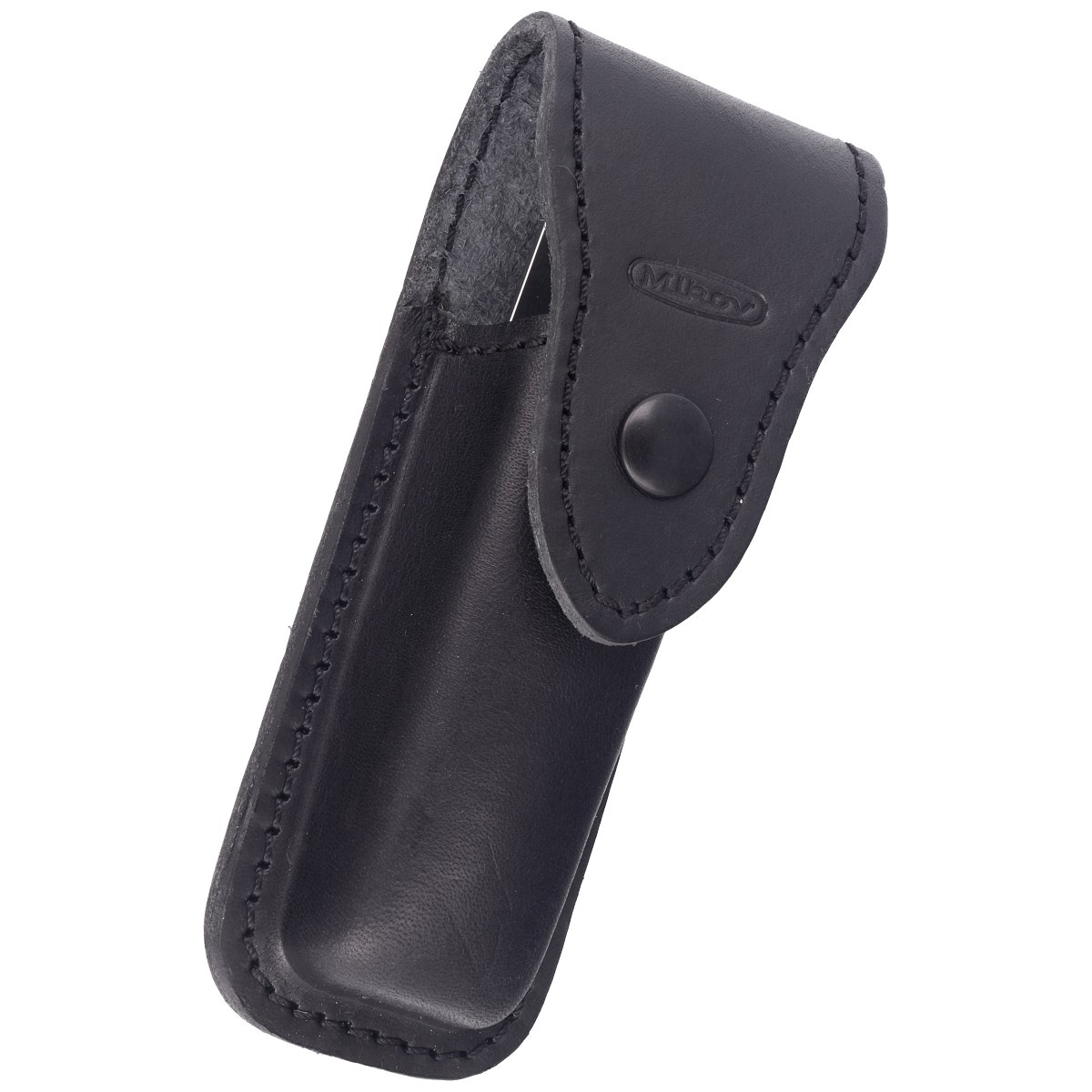 Etui - zapinane na zatrzask. Wykonane z naturalnej skóry w kolorze czarnym z tłoczonym logo producenta. Pochwa posiada mocowanie do pasa lub oporządzenia umożliwiające przenoszenie noża w pozycji pionowej.