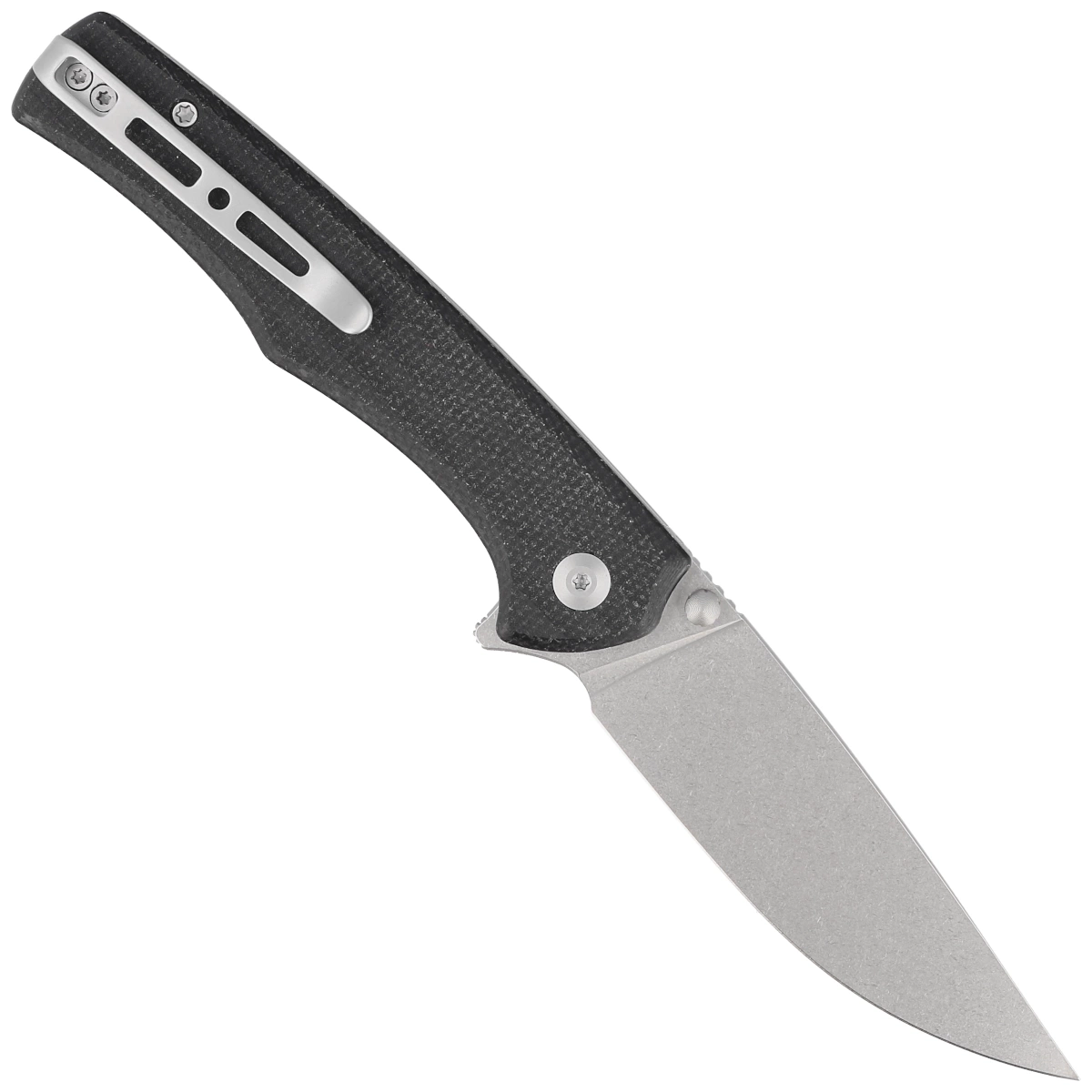 Crowley Black Micarta, Stonewashed to doskonały nóż E.D.C. z głownią drop point. Wykonany z dobrych materiałów przy zachowaniu niezwykle atrakcyjnej ceny folder z klingą ze stali D2, odwracalnym klipsem oraz blokadą Button Lock. Bestseller!