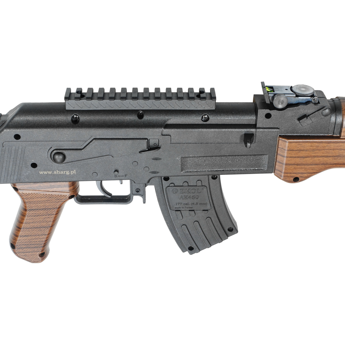 Ekol AK Black Brown, replika legendarnego karabinu automatycznego AK 47 konstrukcji Michaiła Kałasznikowa. Mocna sprężyna pozwala na osiągnięcie dużej prędkości początkowej dzięki czemu karabin nadaje się do strzelania na średnich i dużych dystansach. Solidne wykonanie, celność oraz niezawodność to cechy wyróżniające wiatrówkę tłokową Ekol AK.