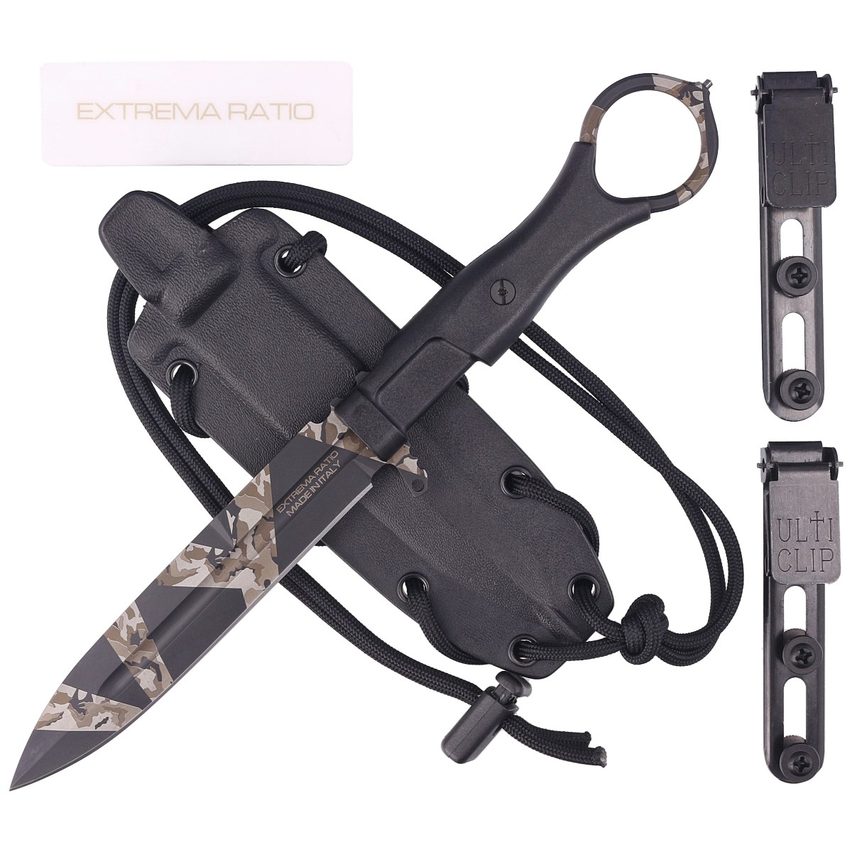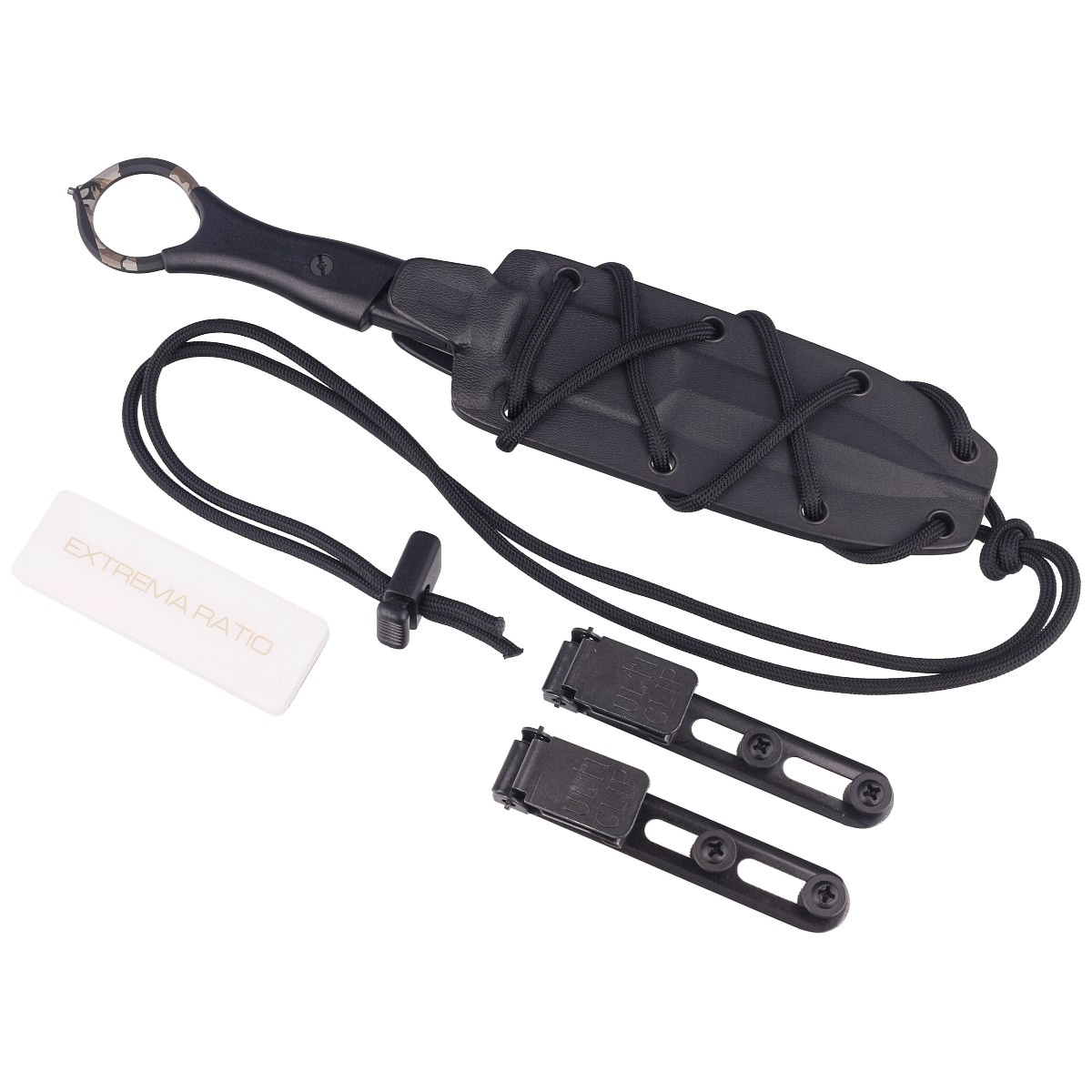 Pochwa - przy projektowaniu noża do profesjonalnego użytku duży nacisk położono na łatwość przenoszenia oraz dobywania. Kabura z kydexu oferuje możliwość mocowania za pomocą klipsa do paska, ulti-clip i malice-clip. Ponadto istnieje możliwość podpięcia pochwy pod taśmy systemu M.O.L.L.E poprzez przeplot linki z paracordu.