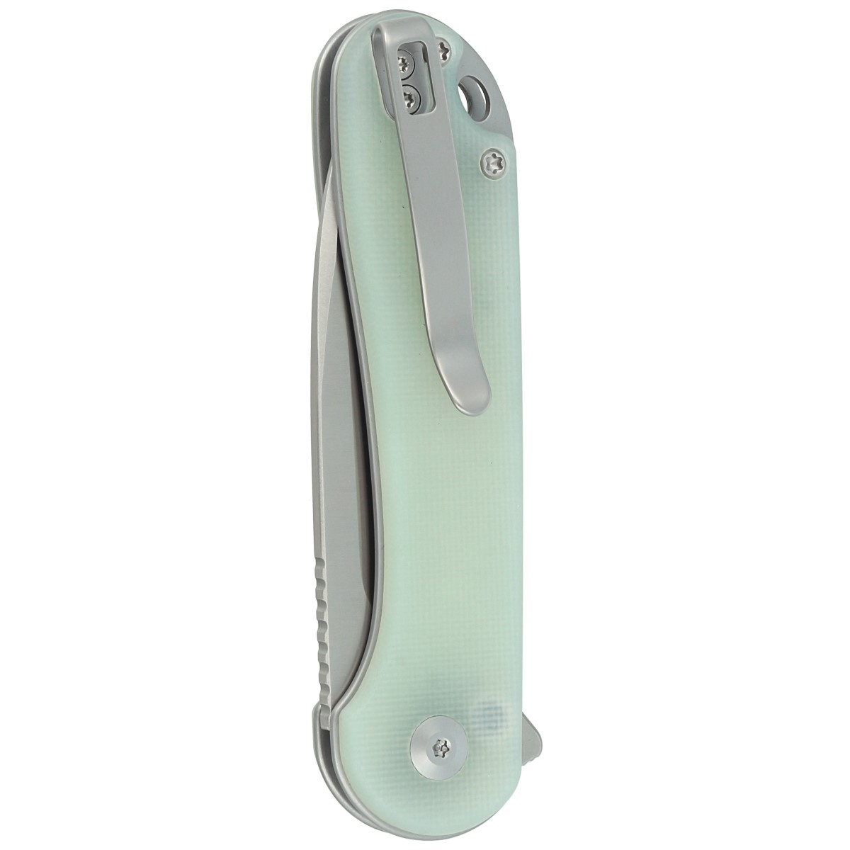 Rękojeść - teksturowane okładki w kolorze Natural z G10, kompozytowego materiału z włókna szklanego i żywicy syntetycznej. Całość mocowana do linersów ze stali nierdzewnej. Prosta, solidna konstrukcja daje pewność wieloletniego użytkowania. Otwarta konstrukcja tzw. open-backed mocowana stalowymi tulejami dystansowymi redukuję wagę oraz ułatwia czyszczenie. Oś pivota zdobi stylizowane logo marki Civivi. Metalowy jednostronny (prawa) klips deep carry pozwala przenosić dyskretnie nóż w kieszeni w pozycji tip-up (czubkiem ostrza do góry).