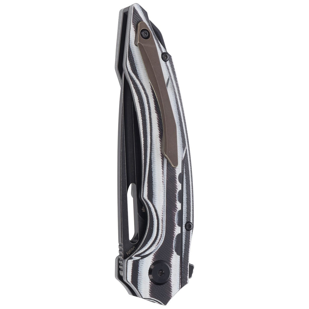 - Ornetta Carbon Fiber / White G10, Black Stonewashed projekt Grzegorza "Kombou" Grabarskiego. Klinga z wyrafinowaną linią szlifu przechodzącą w głęboki rowek zbrocza, otwór na kciuk oraz płetwa flippera umożliwiają otwarcie ostrza na 3 sposoby. Bestseller!