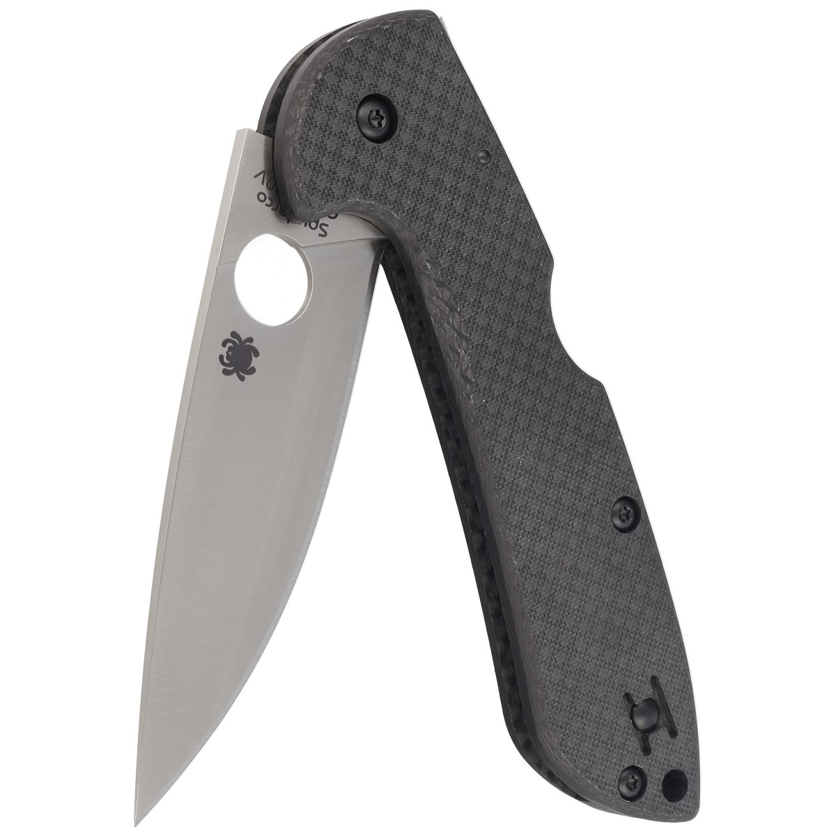 Głownia - smukła i ostra Drop Point z gładkim ostrzem Plain z eleganckim, satynowym wykończeniem klingi. Całkowicie płaski szlif (Full Flat Grind), zapewnia wyjątkową geometrię krawędzi. Powiększone 14 mm wycięcie SpyderHole (patent Spyderco) do oburęcznego otwierania kciukiem. Głęboki index-finger choil, podcięcie pod palec wskazujący dla kontroli uchwytu foldera a także ochrony palca przed zsunięciem się na ostrze.
